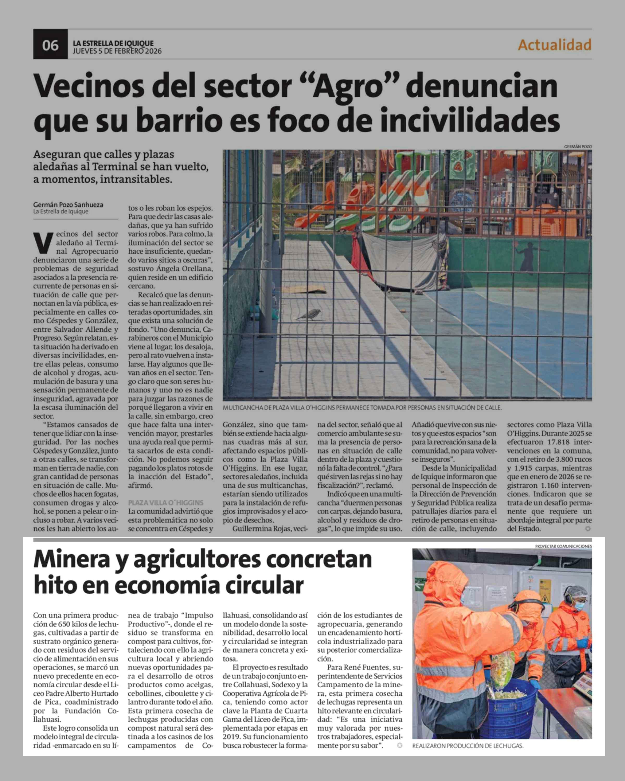 Minera y agricultores concretan hito en economía circular 05-02-2026 La Estrella de Iquique |