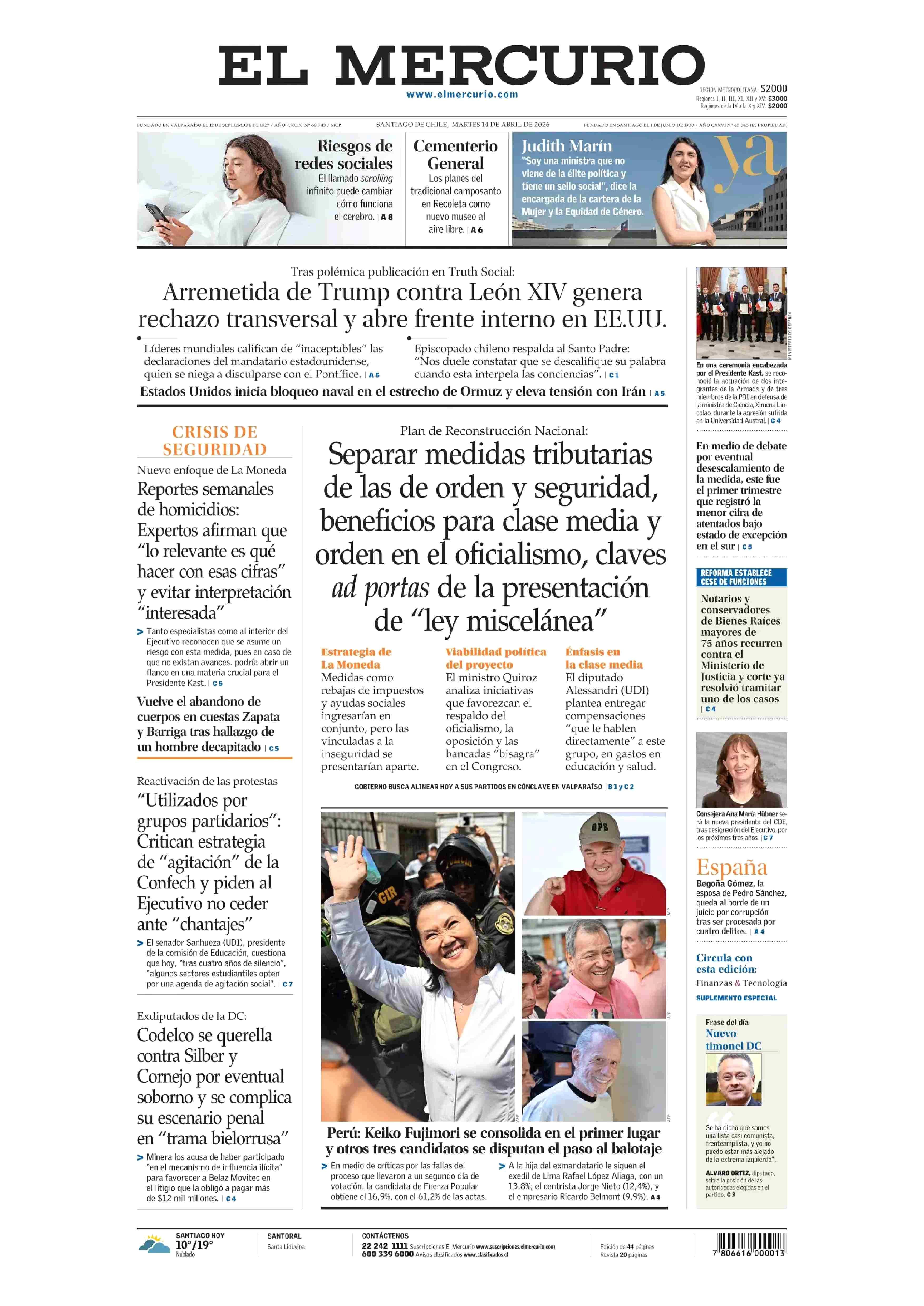 Fecha: 14-04-2026 Sector: Portada Región: Región Metropolitana de Santiago