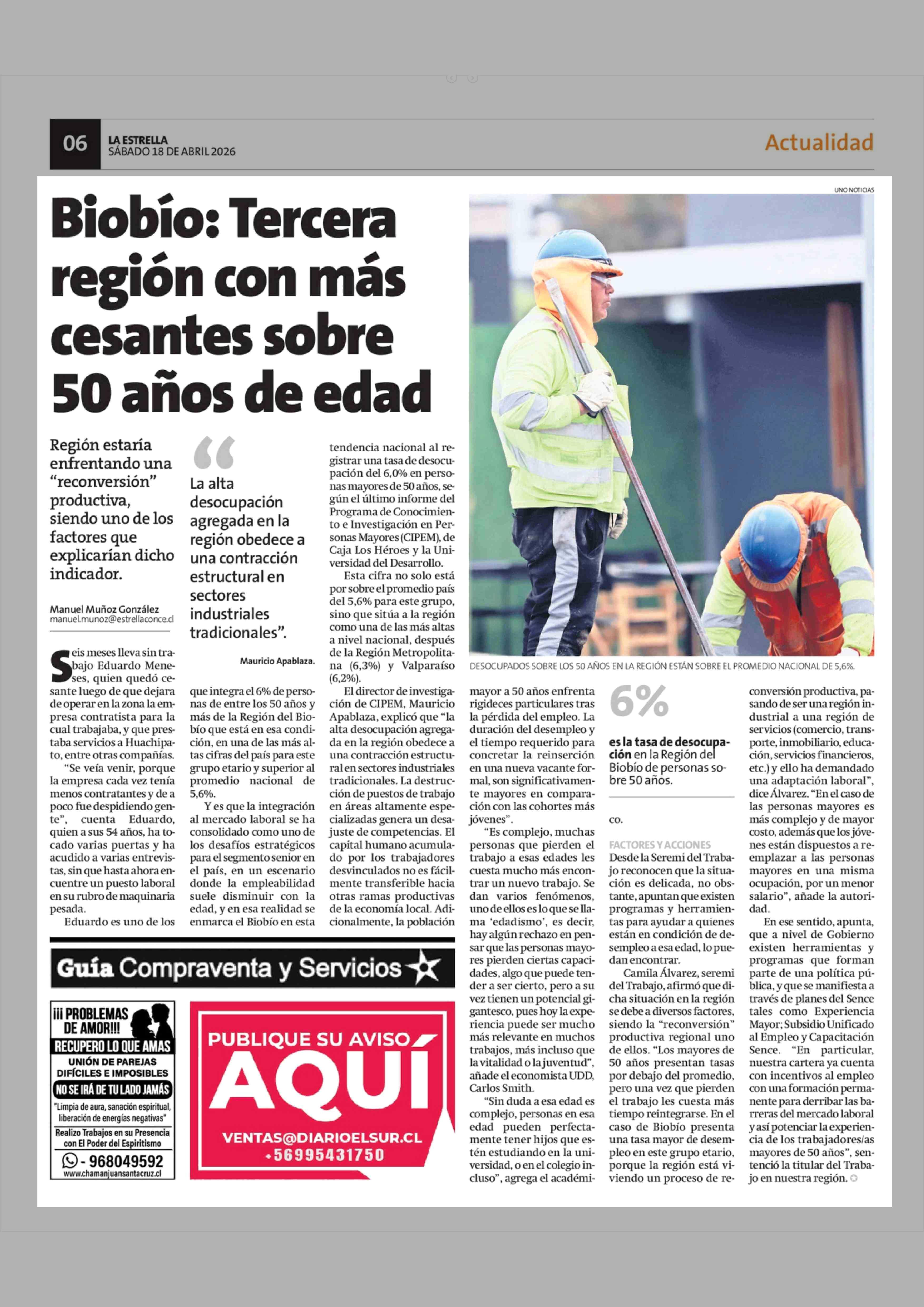 Título: Biobio: Tercera región con más cesantes sobre 50 años de edad