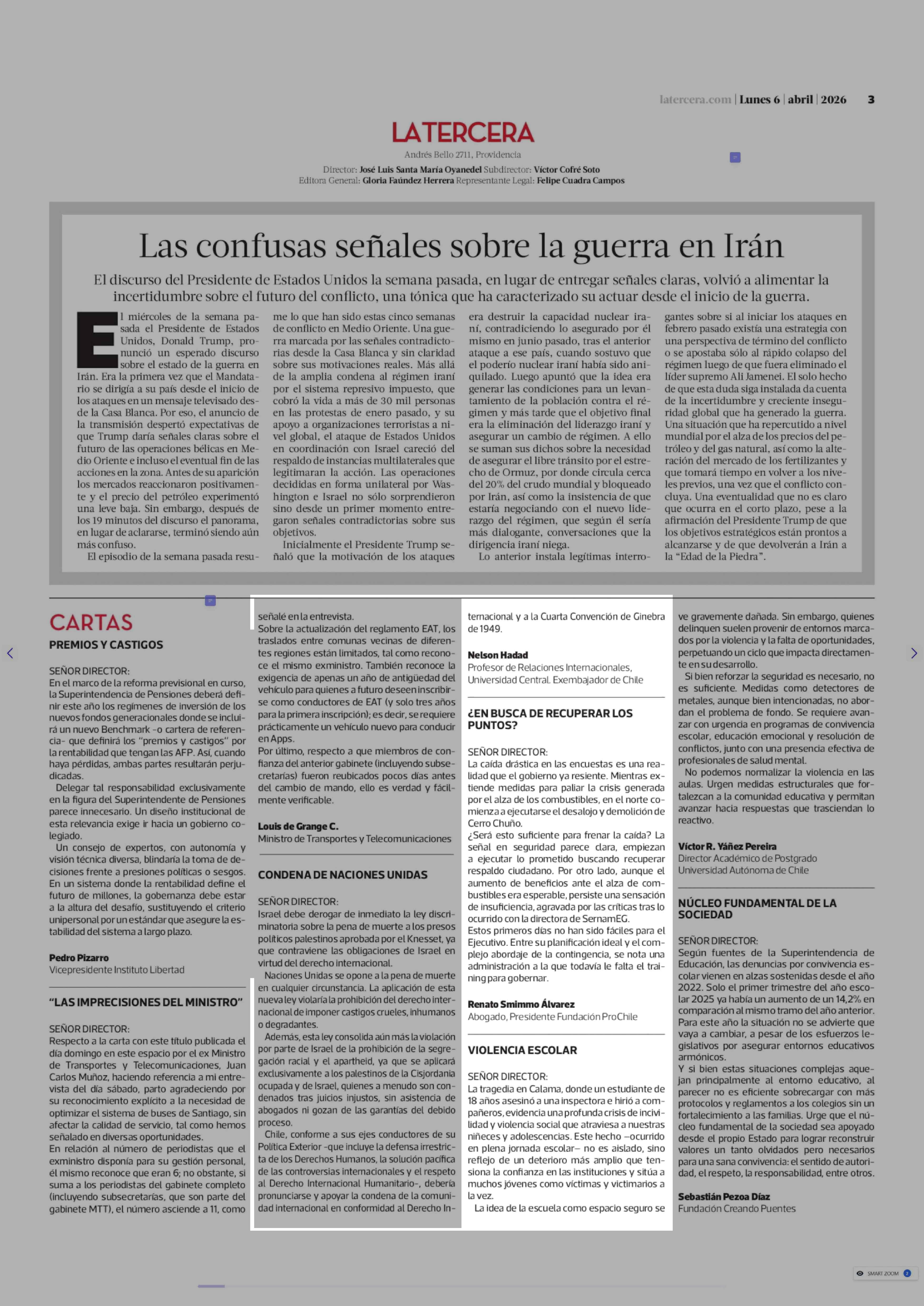 CARTAS: CONDENA DE NACIONES UNIDAS 06-04-2026 La Tercera |