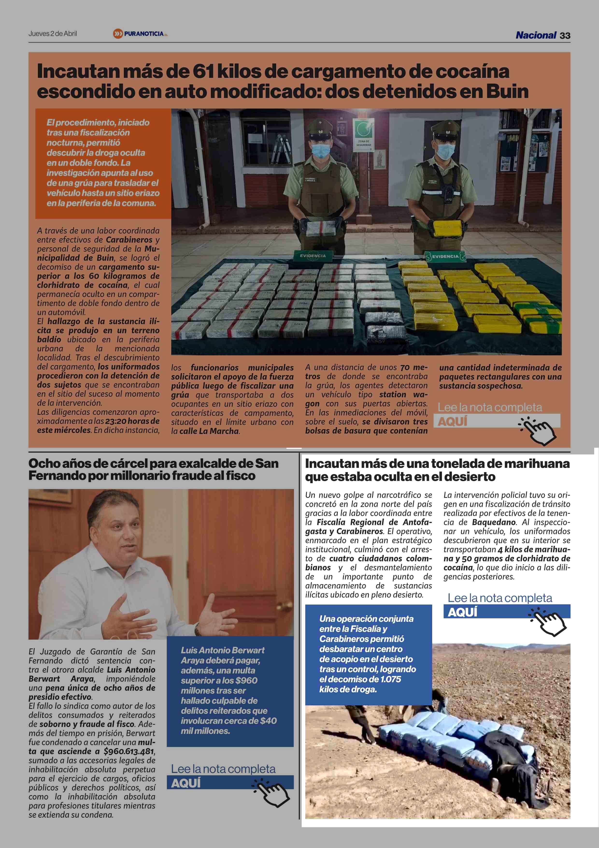 | Fuente: | Puranoticia.cl (Puranoticia.cl) | Página(s): | 33 |