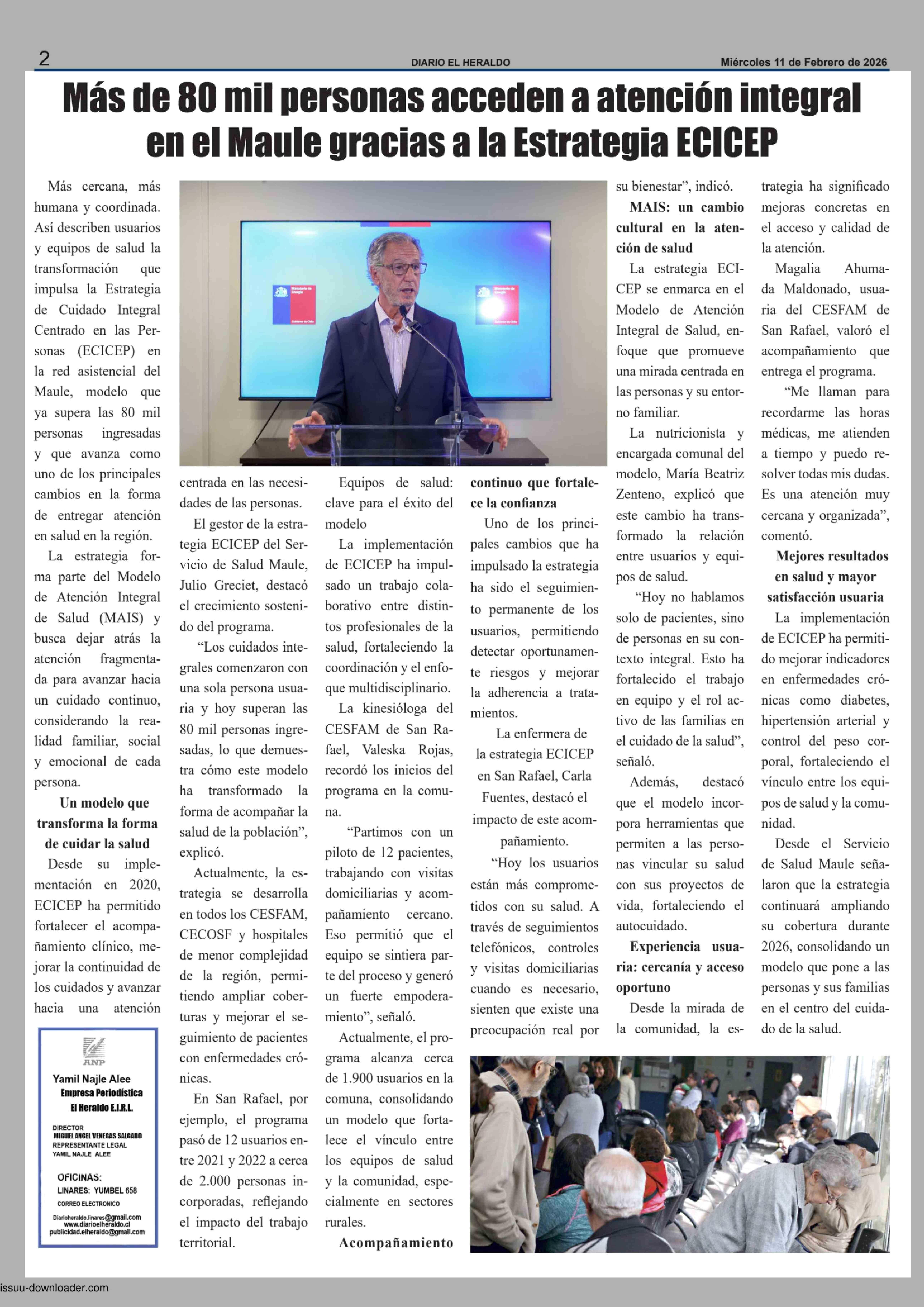 Más de 80 mil personas acceden a atención integral en el Maule gracias a la Estrategia ECICEP 11-02-2026 El Heraldo |