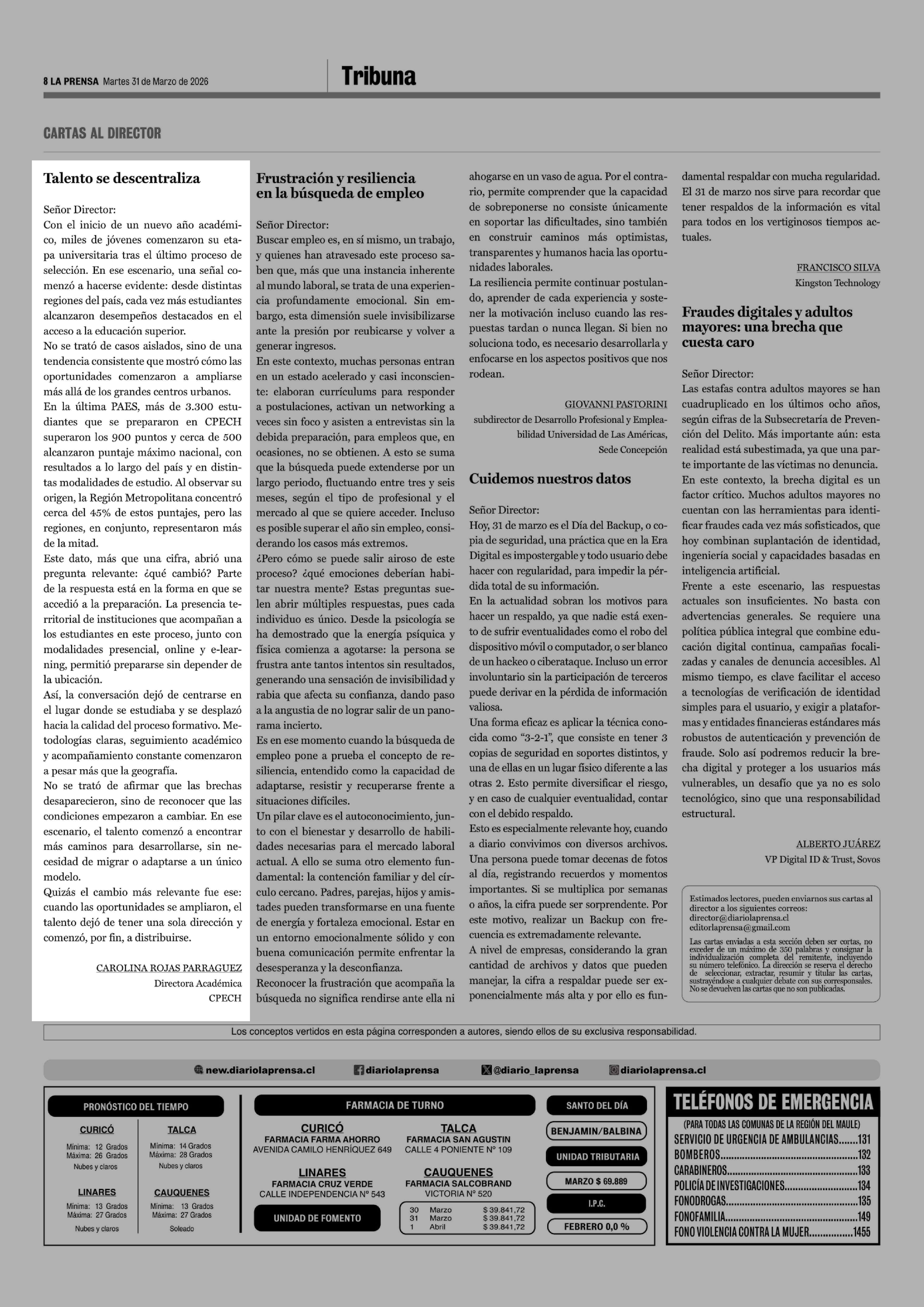 31-03-2026 La Prensa de Curicó
