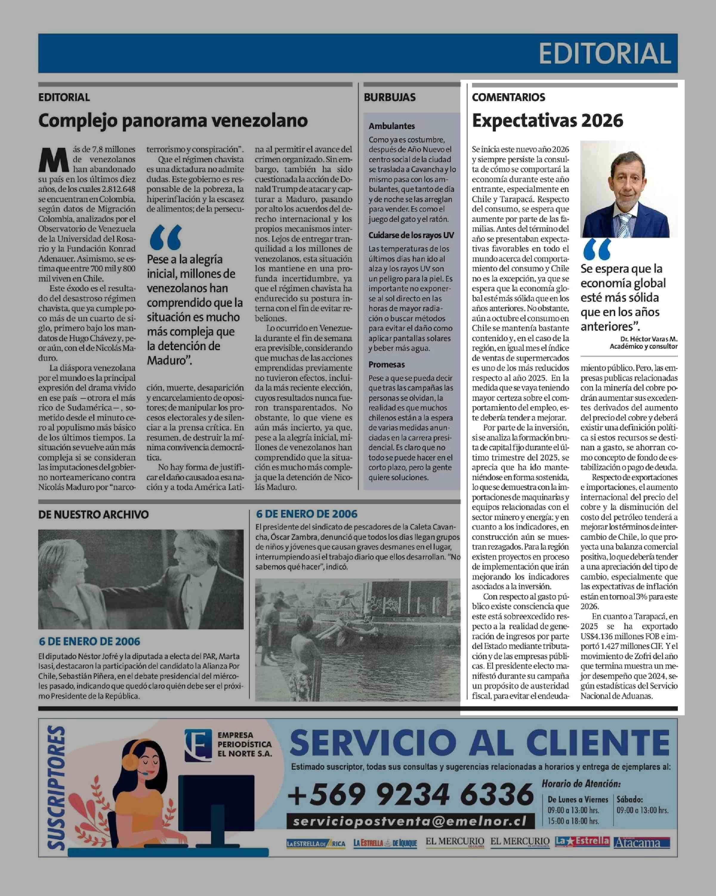 Columnas de Opinión: Expectativas 2026 06-01-2026 La Estrella de Iquique |