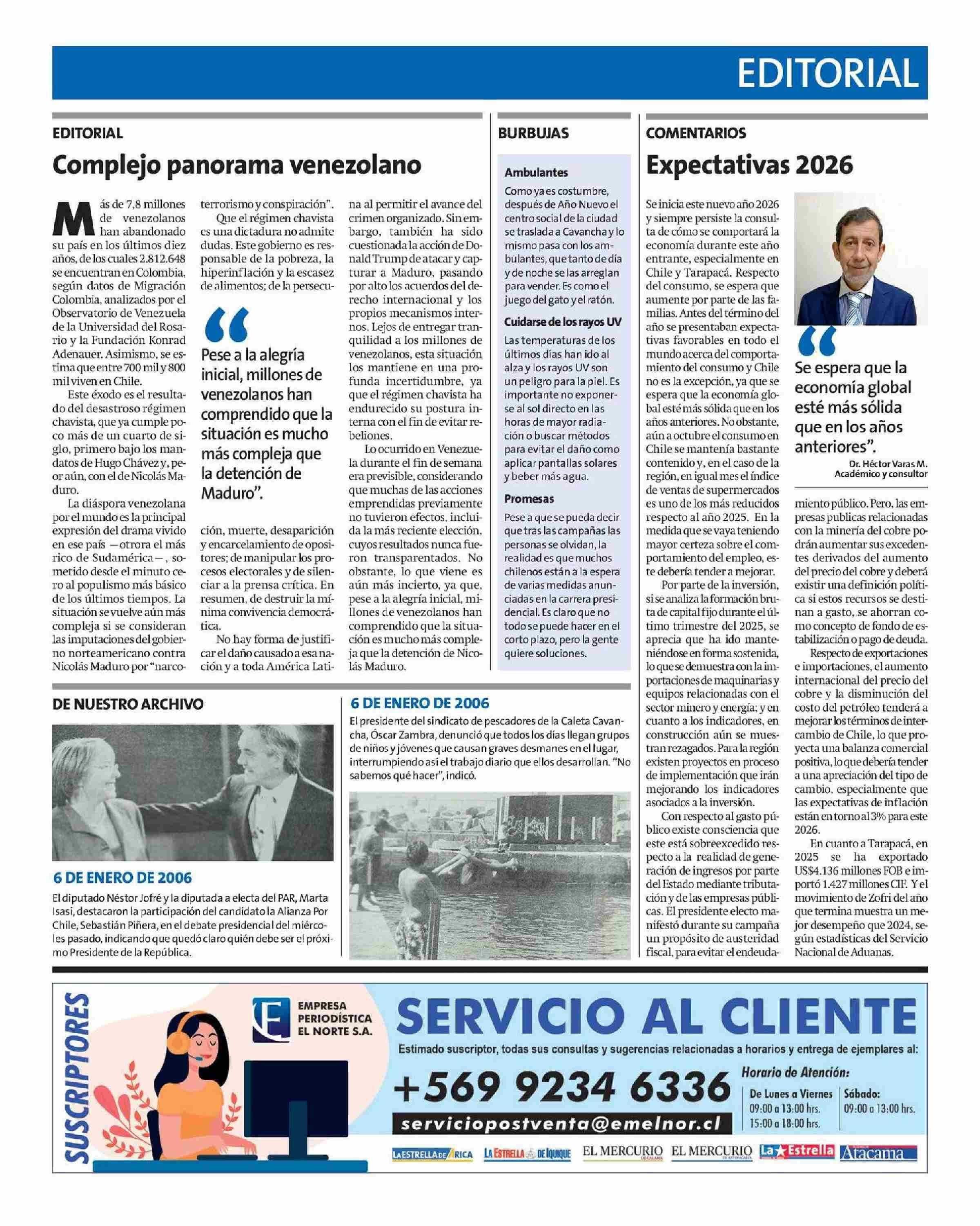 | Fecha: | 06-01-2026 | Sector: | Columnas de Opinión | Región: | Región de Tarapacá |