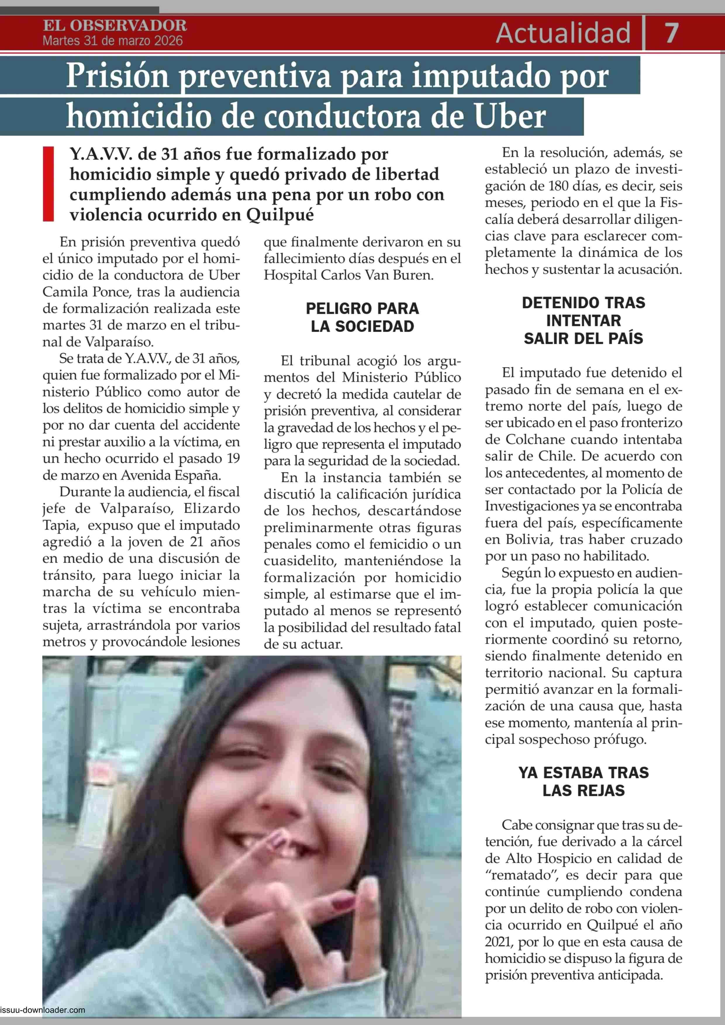 Título: Prisión preventiva para imputado por “homicidio de conductora de Uber