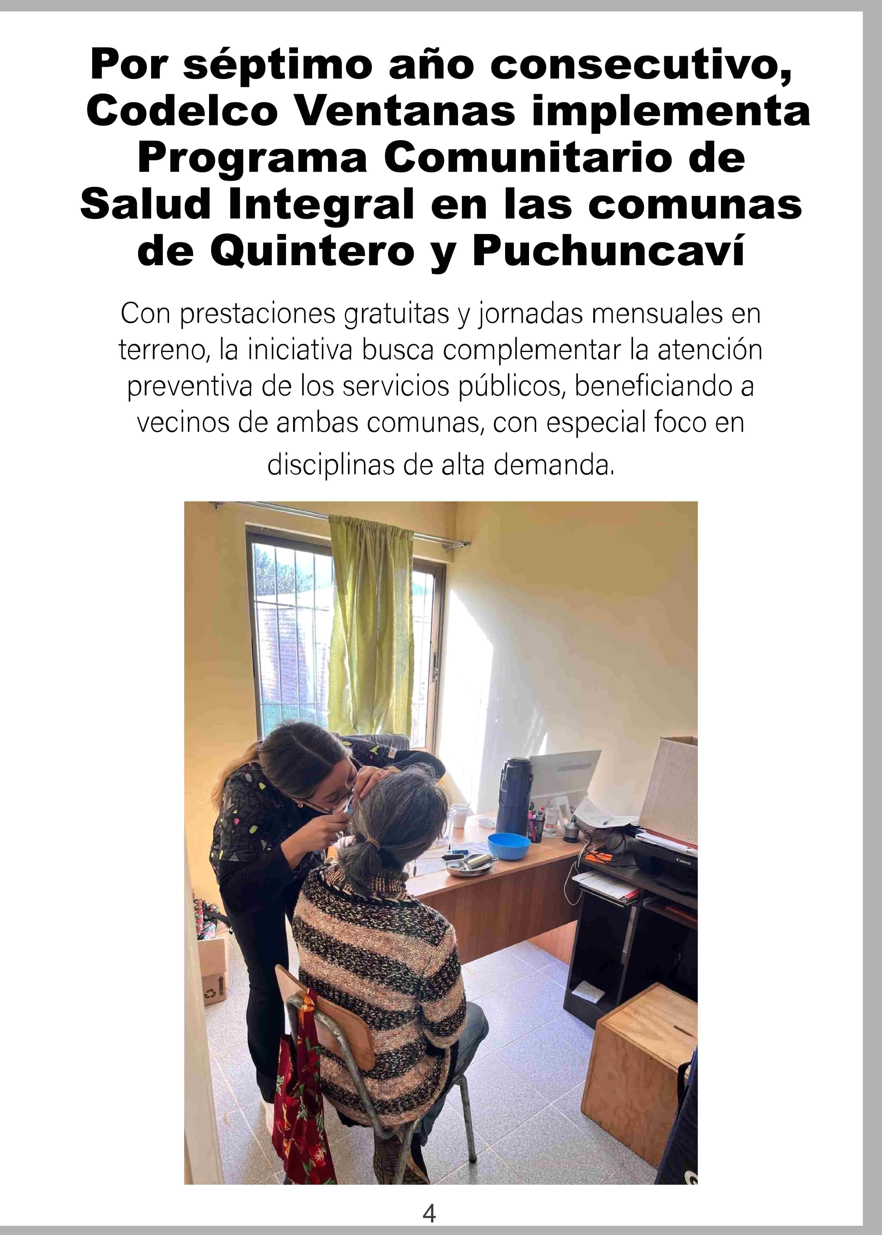 | Título: | Por séptimo año consecutivo, Codelco Ventanas implementa Programa Comunitario de Salud Integral en las comunas de Quintero y Puchuncaví |