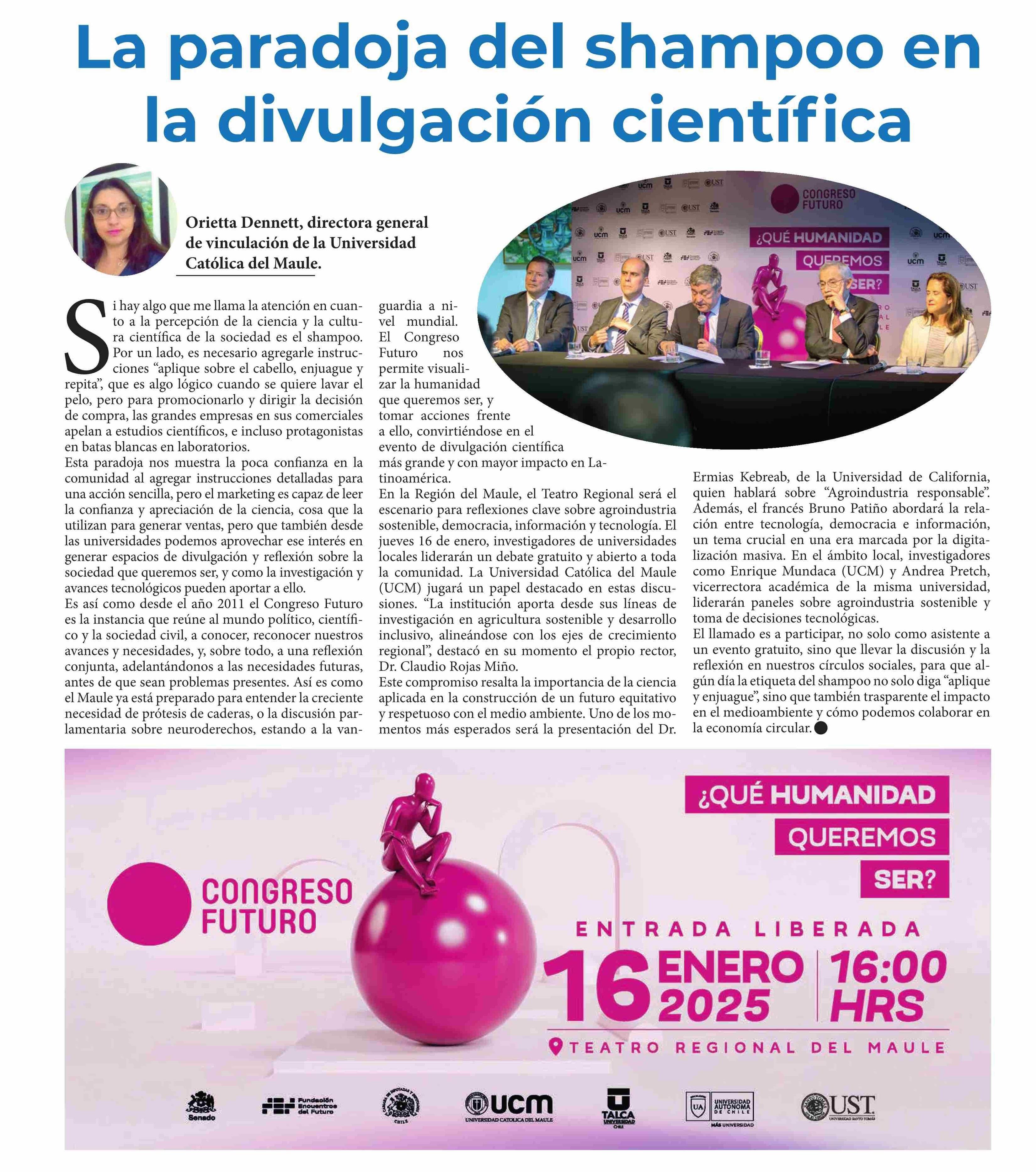 COLUMNAS DE OPINIÓN: La paradoja del shampoo en la divulgación científica 14-01-2025 Diario Talca |