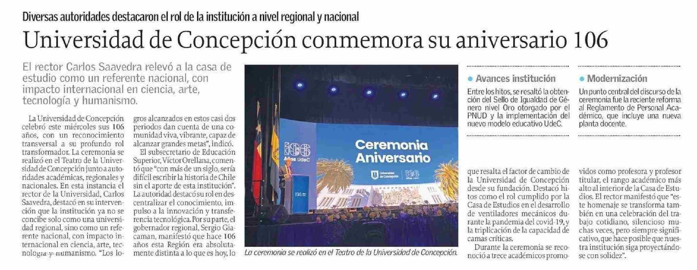 Universidad de Concepción conmemora su aniversario 106 15-05-2025 El Sur |