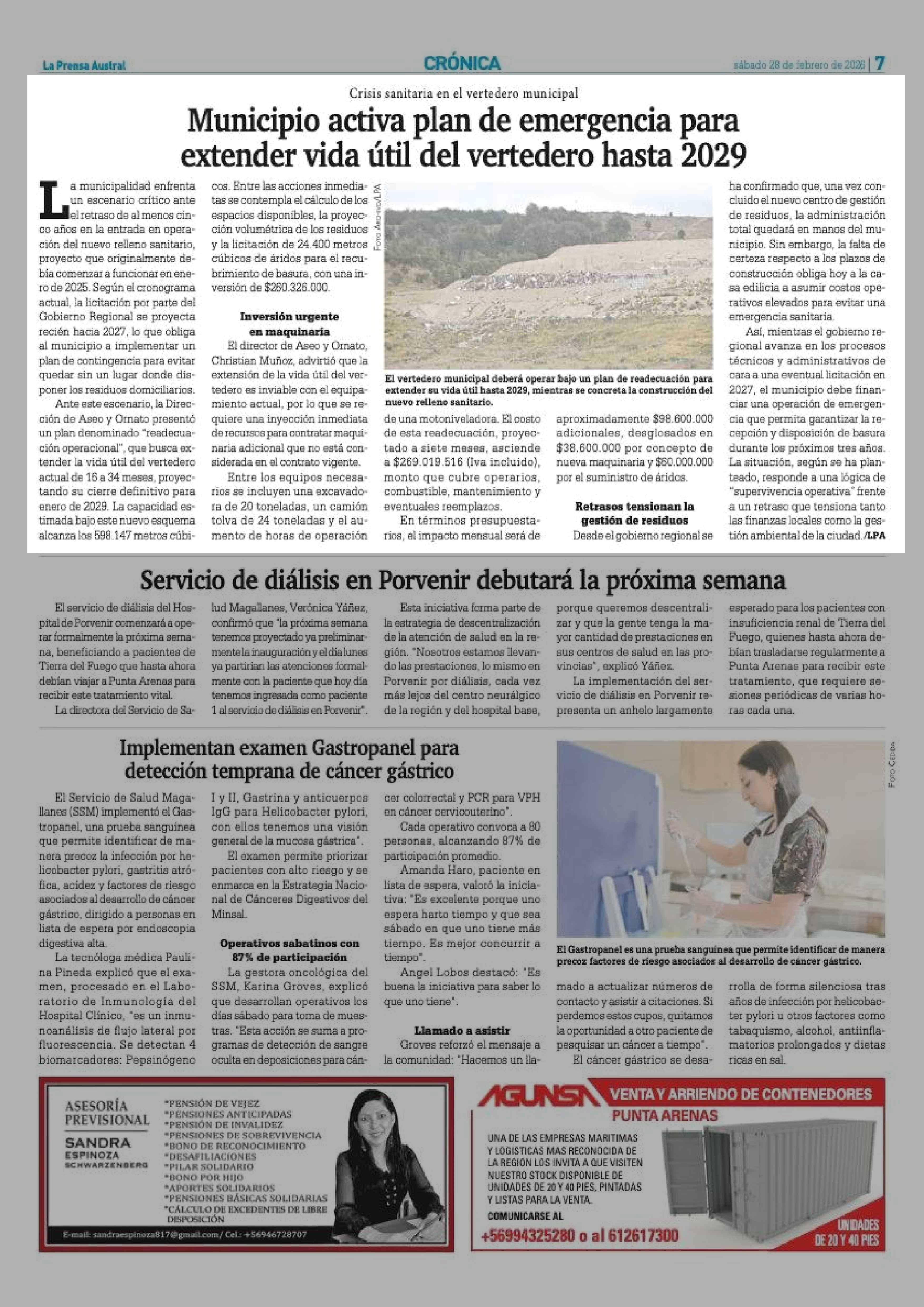 Municipio activa plan de emergencia para extender vida útil del vertedero hasta 2029 28-02-2026 La Prensa Austral |