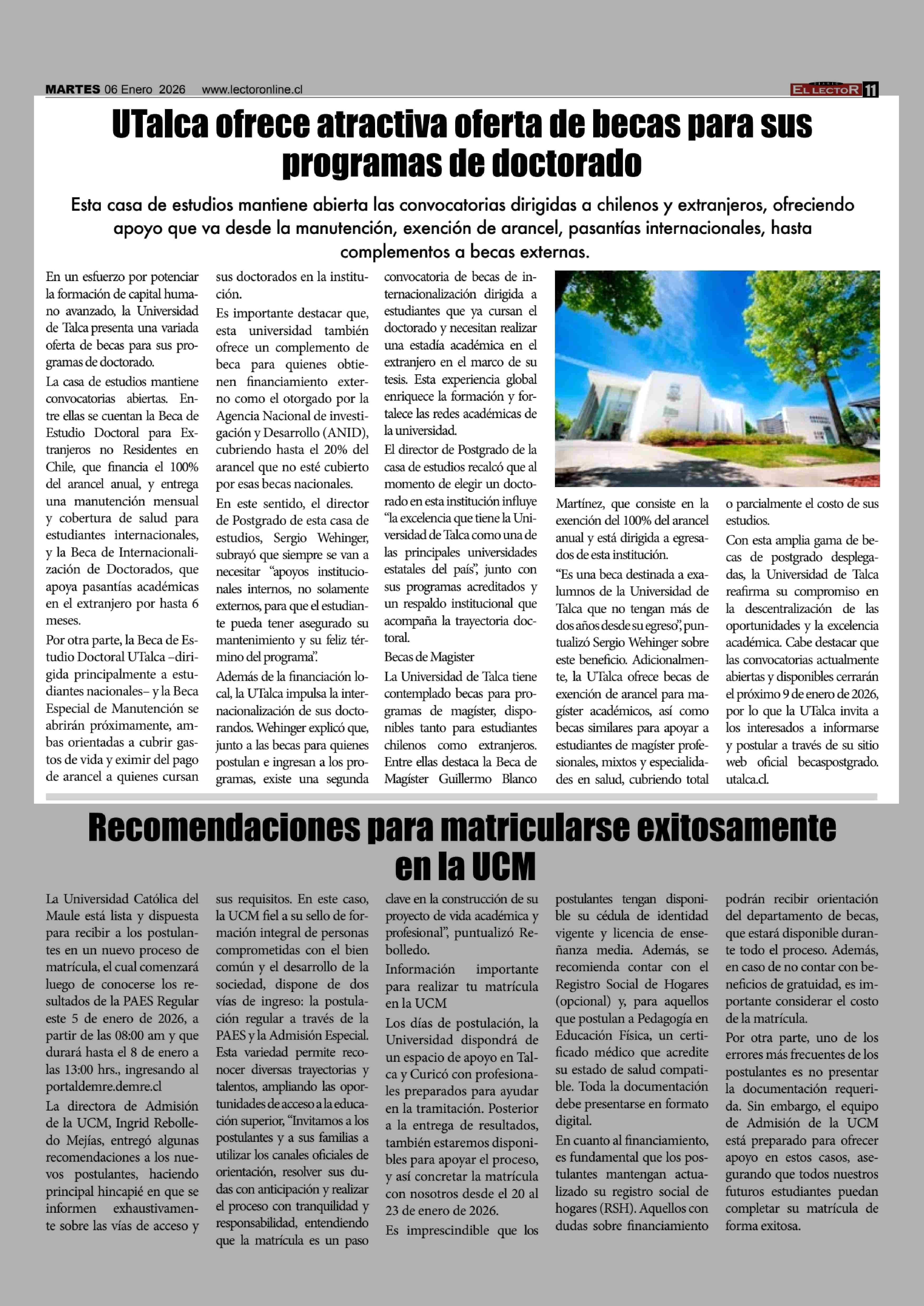 UTalca ofrece atractiva oferta de becas para sus programas de doctorado 06-01-2026 El Lector |