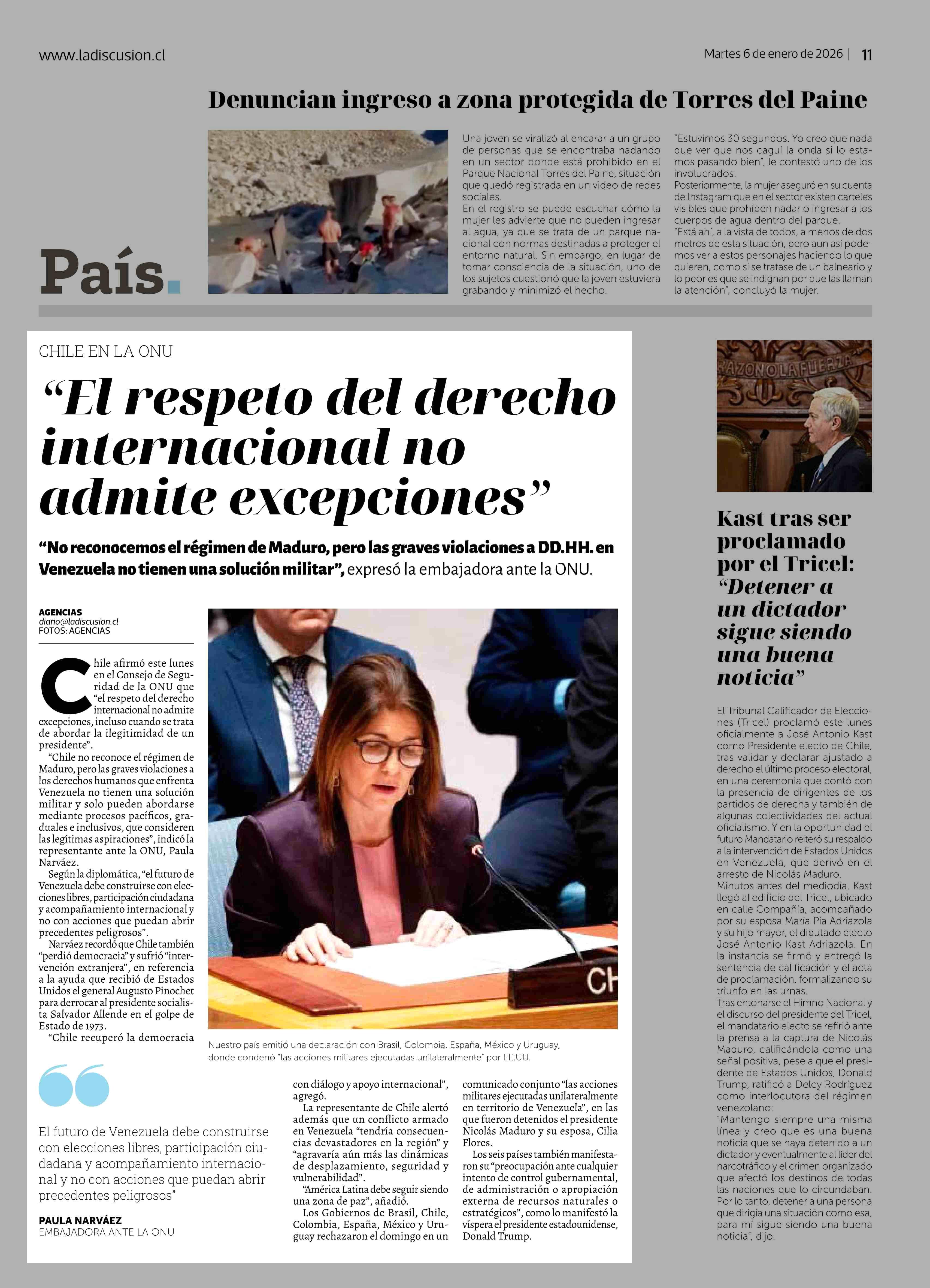 "El respeto del derecho internacional no admite excepciones" 06-01-2026 La Discusión |
