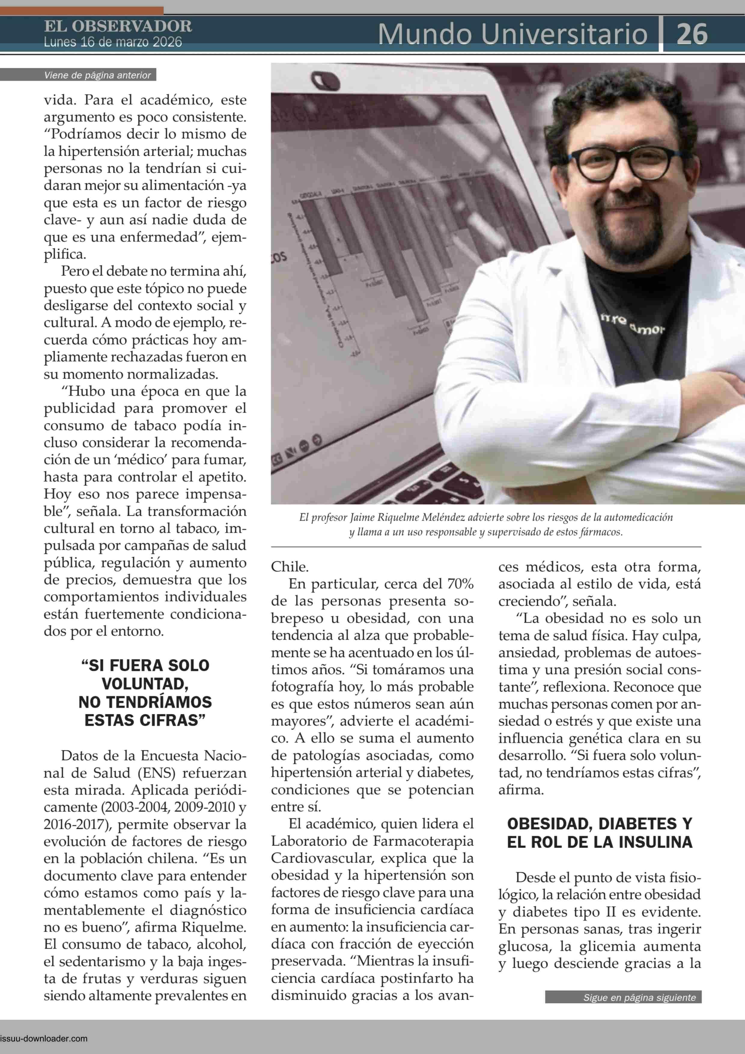 Título: Académico U. de Chile advierte riesgos en uso de fármacos para tratar obesidad