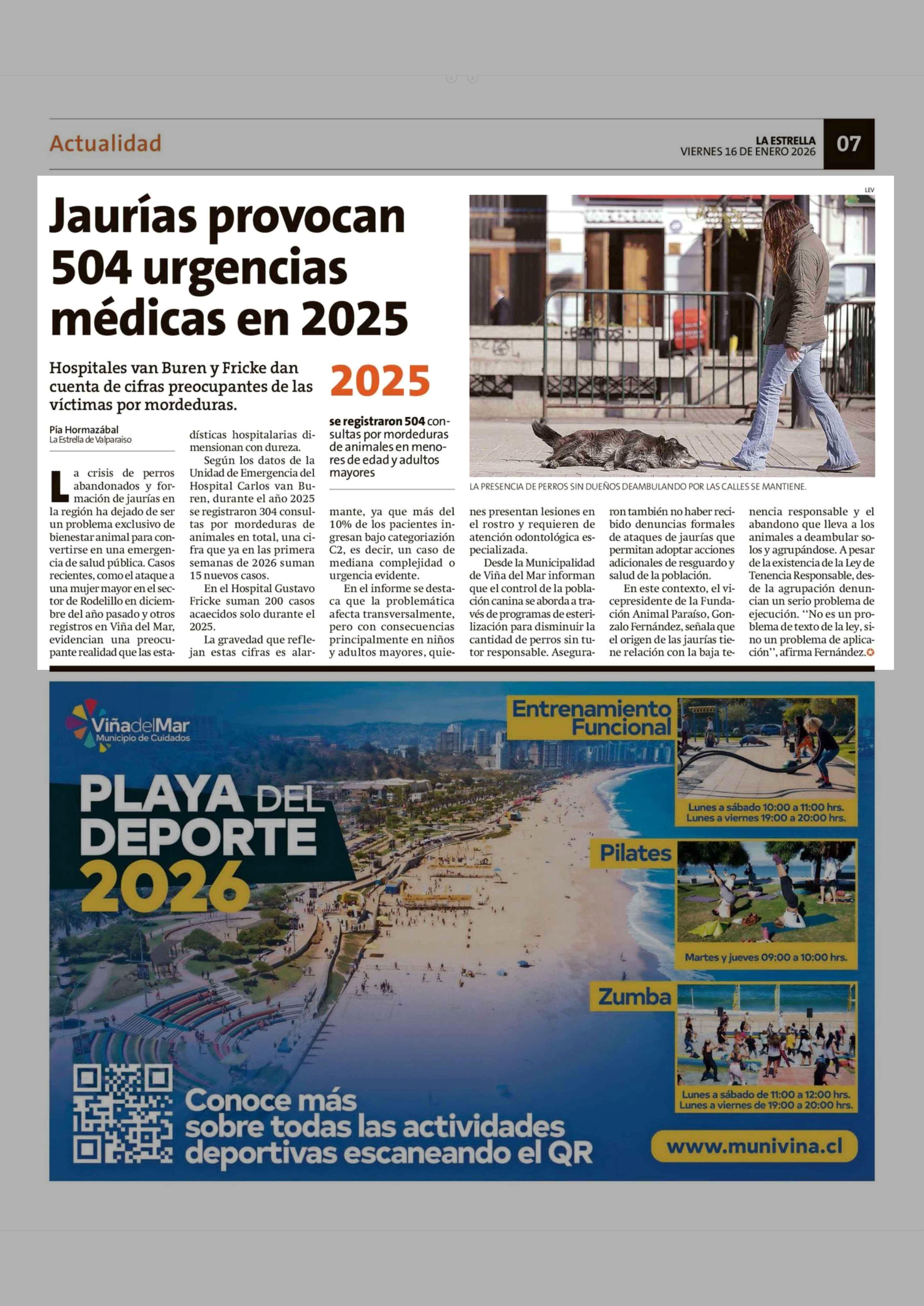 Jaurías provocan 504 urgencias médicas en 2025 16-01-2026 La Estrella de Valparaíso |