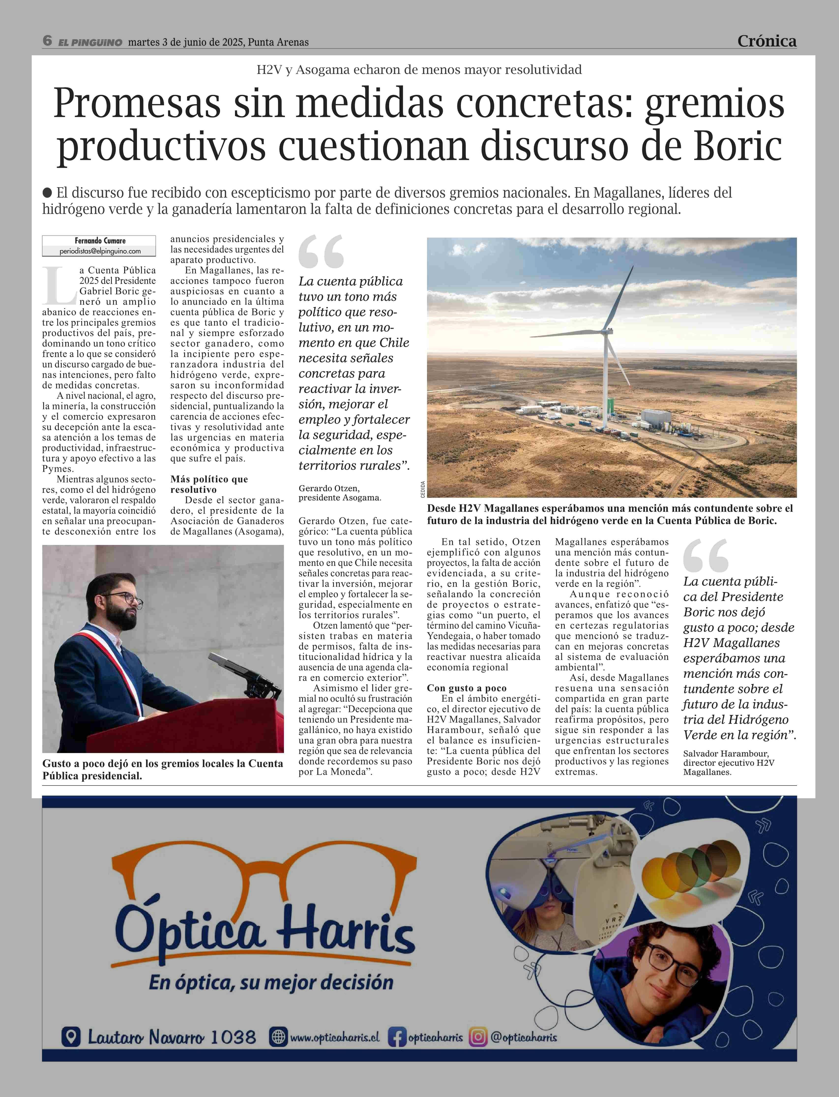 Título: Promesas sin medidas concretas: gremios productivos cuestionan discurso de Boric