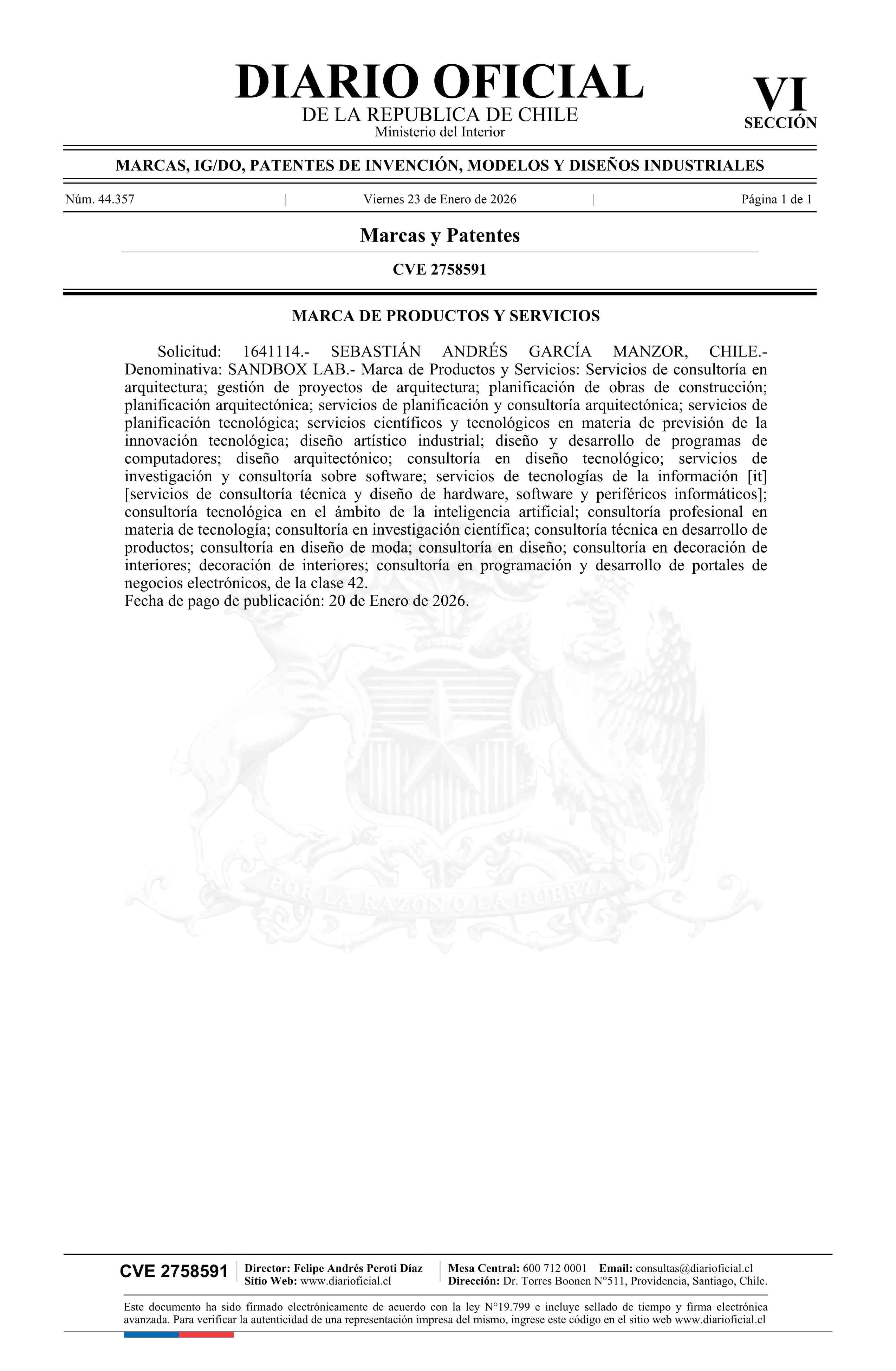 Solicitud número 1641114.- SANDBOX LAB 23-01-2026 Diario Oficial Edición Electrónica |