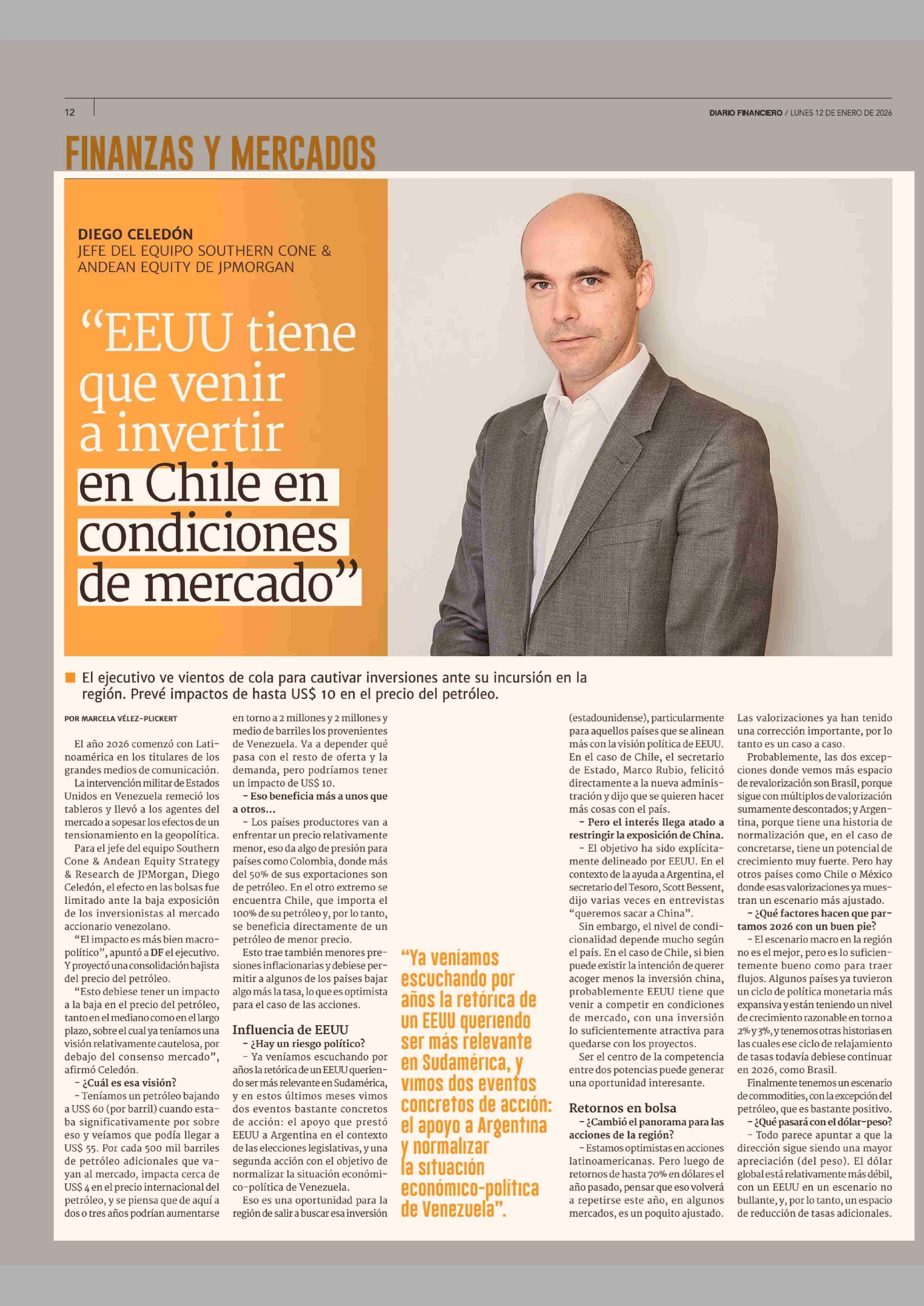 "EEUU tiene que venir a invertir en Chile en condiciones de mercado" 12-01-2026 Diario Financiero |