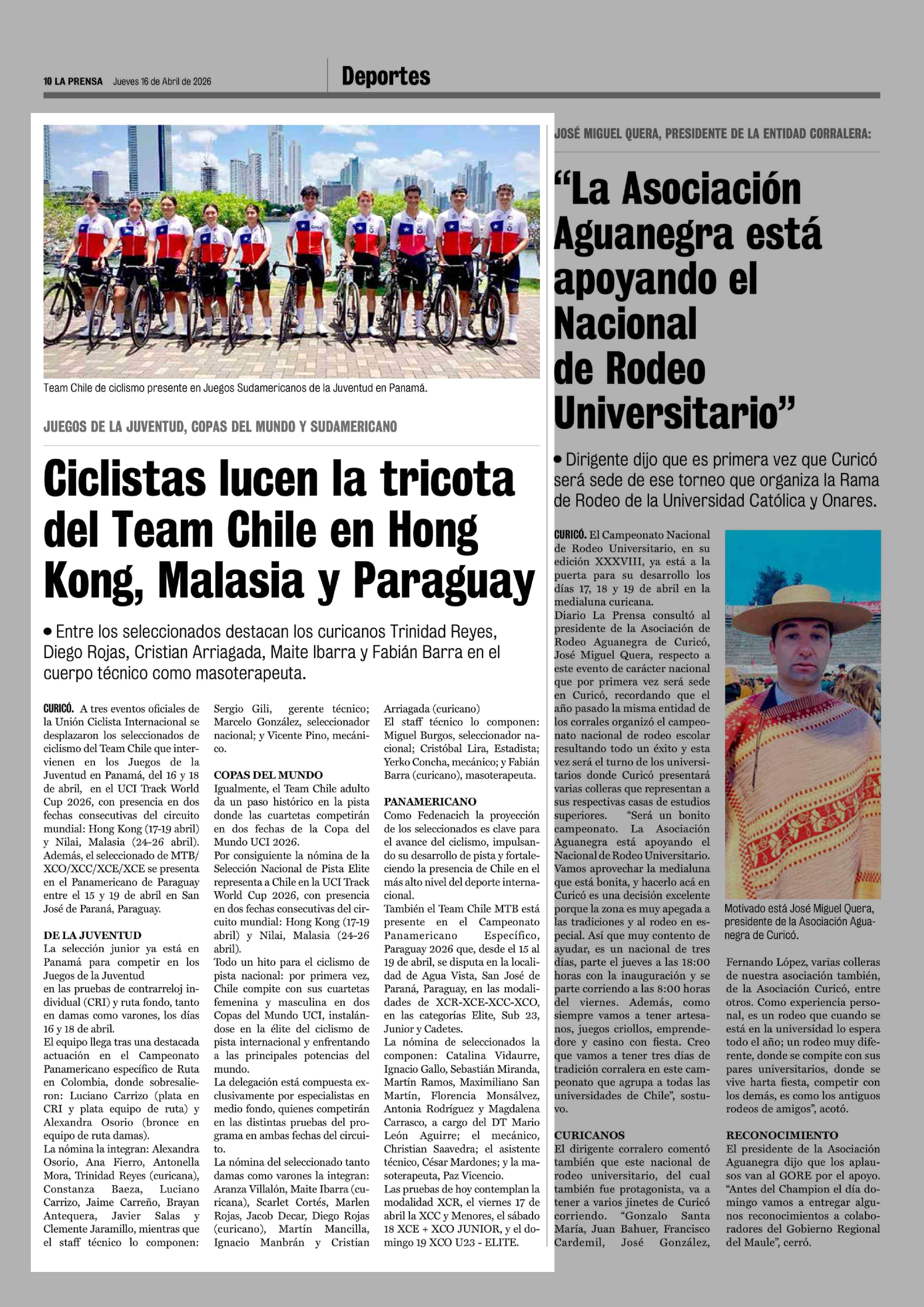 Ciclistas lucen la tricota del Team Chile en Hong Kong, Malasia y Paraguay 16-04-2026 La Prensa de Curicó |