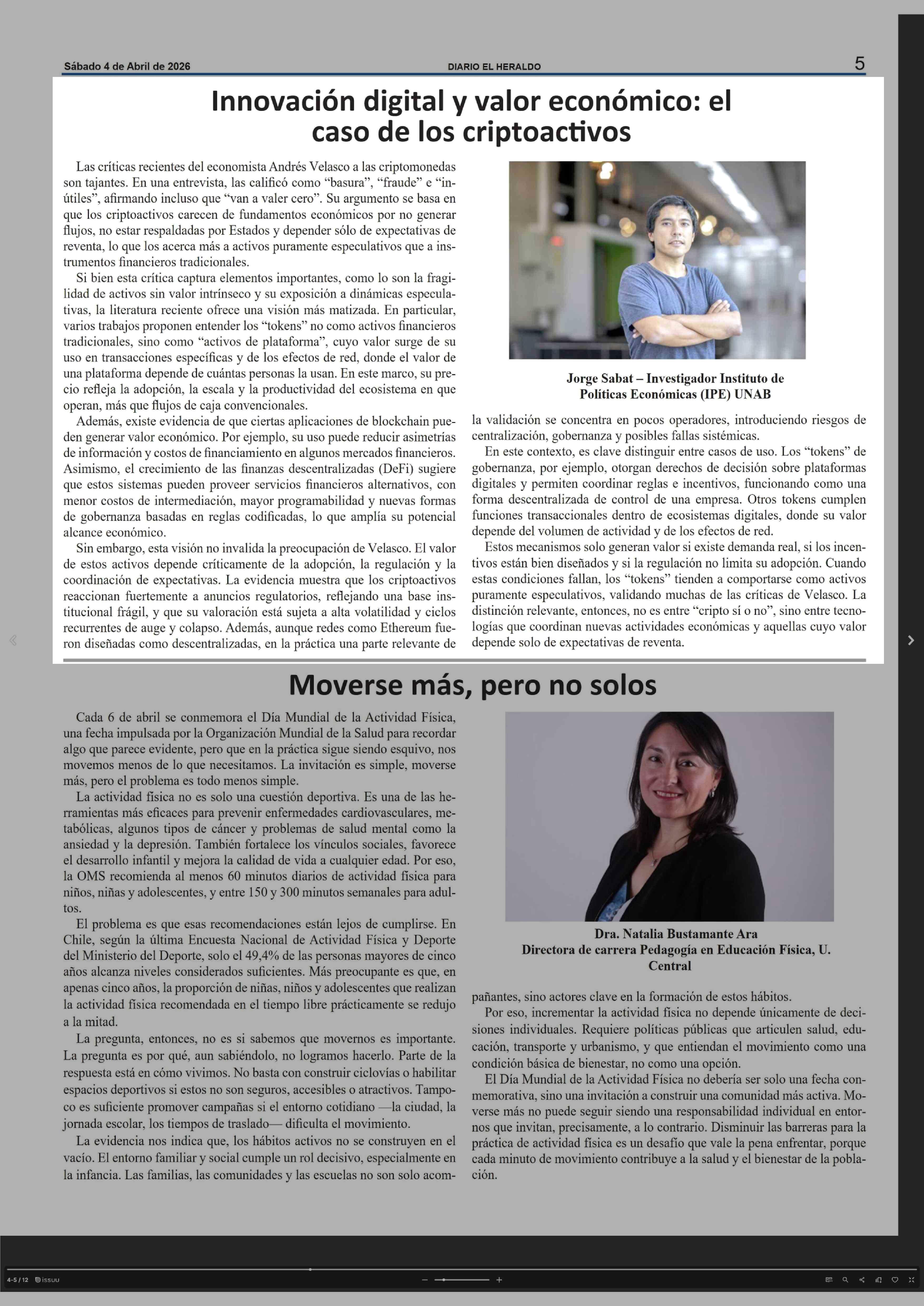 Columnas de Opinión: Innovación digital y valor económico: el caso de los criptoactivos 04-04-2026 El Heraldo |