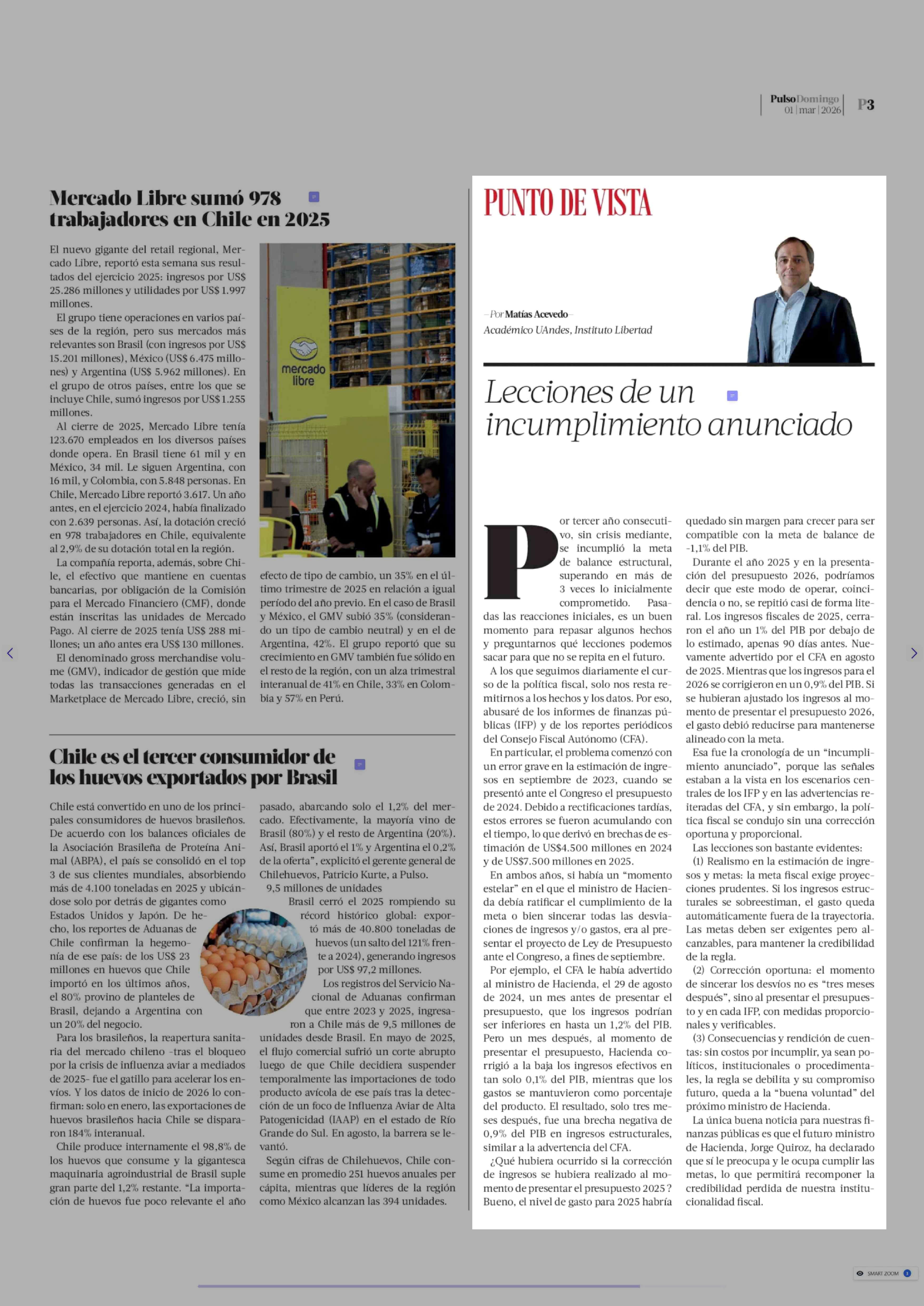 Columnas de Opinión: Lecciones de un incumplimiento anunciado 01-03-2026 La Tercera |