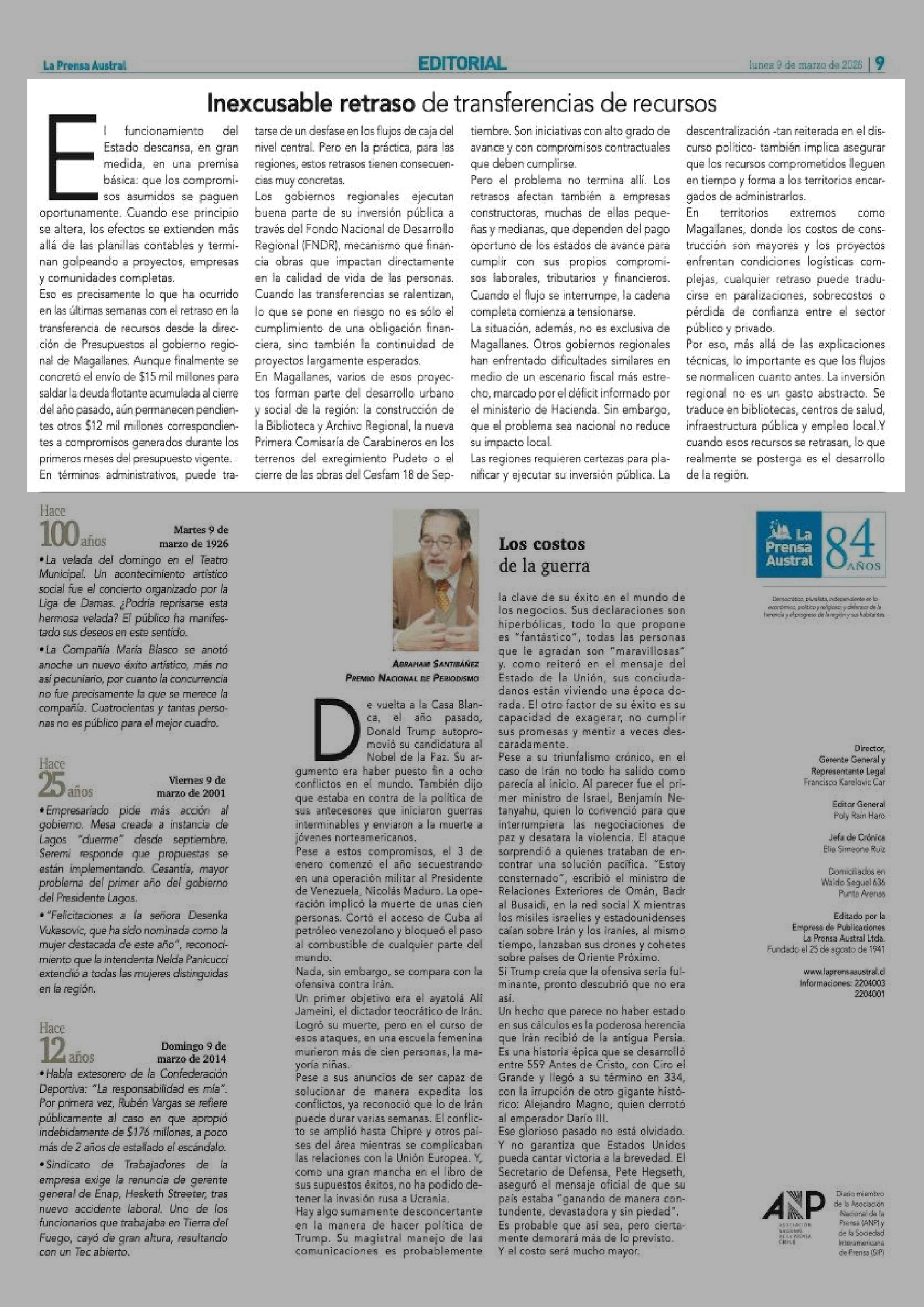 Fecha: 09-03-2026 Sector: Editorial Región: Región de Magallanes y de la Antártica Chilena