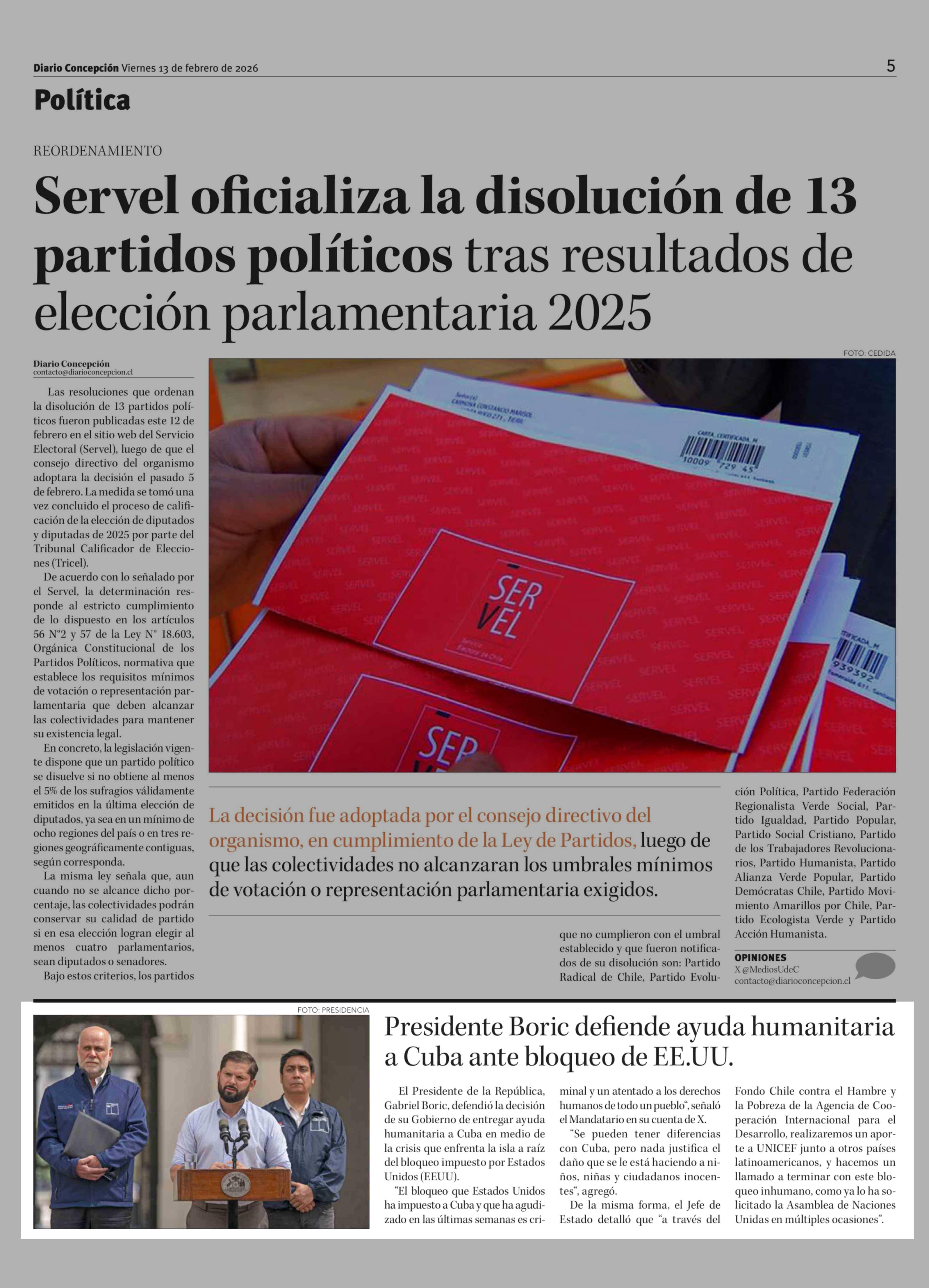 Presidente Boric defiende ayuda humanitaria a Cuba ante bloqueo de EE.UU. 13-02-2026 Diario Concepción |