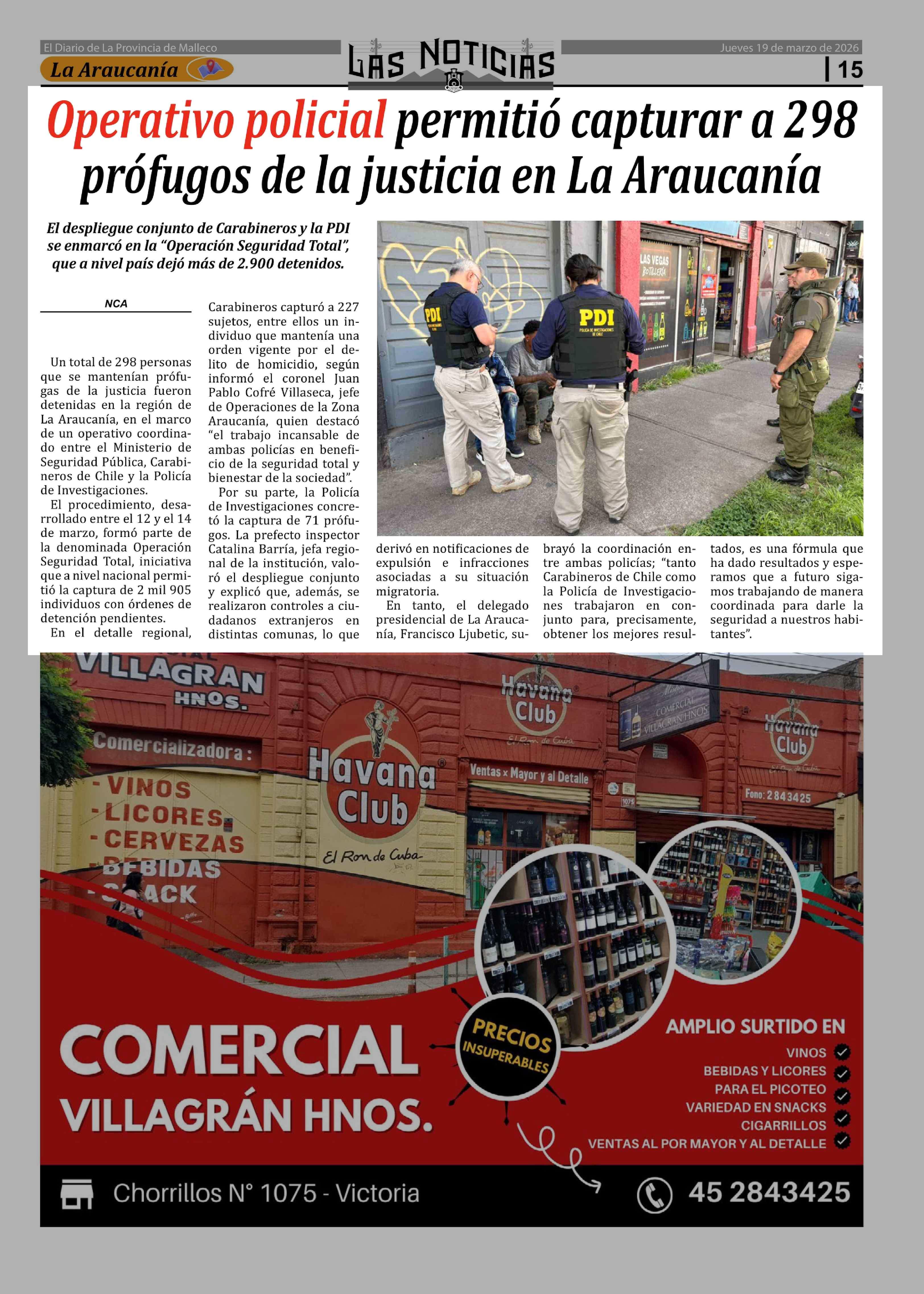 Operativo policial permitió capturar a 298 prófugos de la justicia en La Araucanía 19-03-2026 Las Noticias |