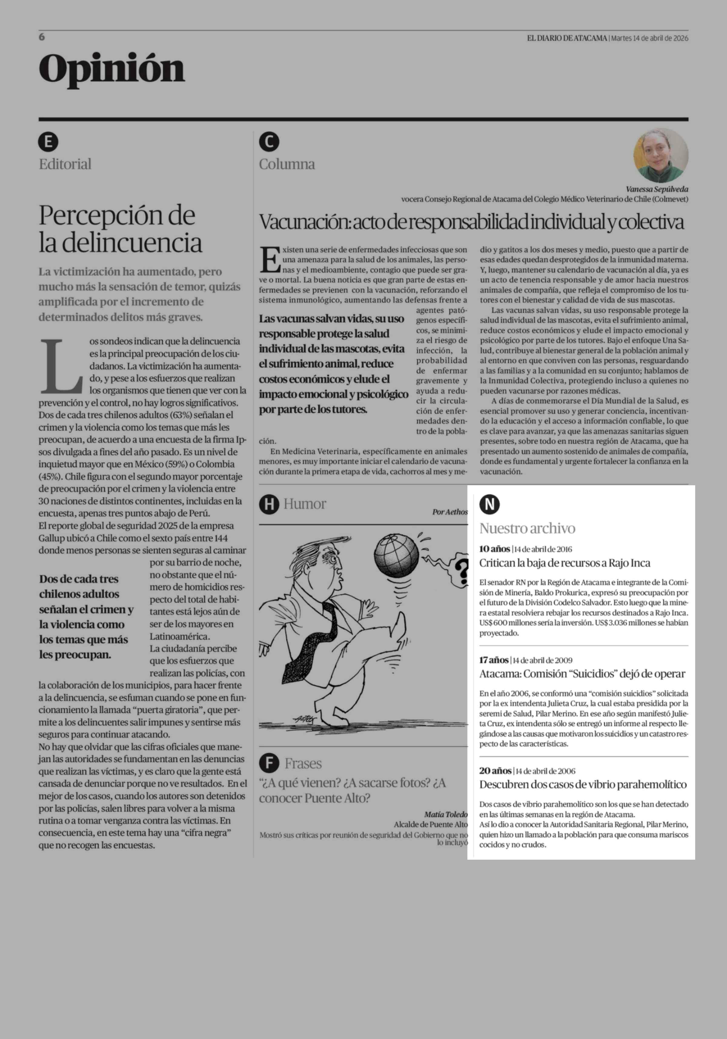 Fecha: 14-04-2026 Sector: Noticia general Región: Región de Atacama