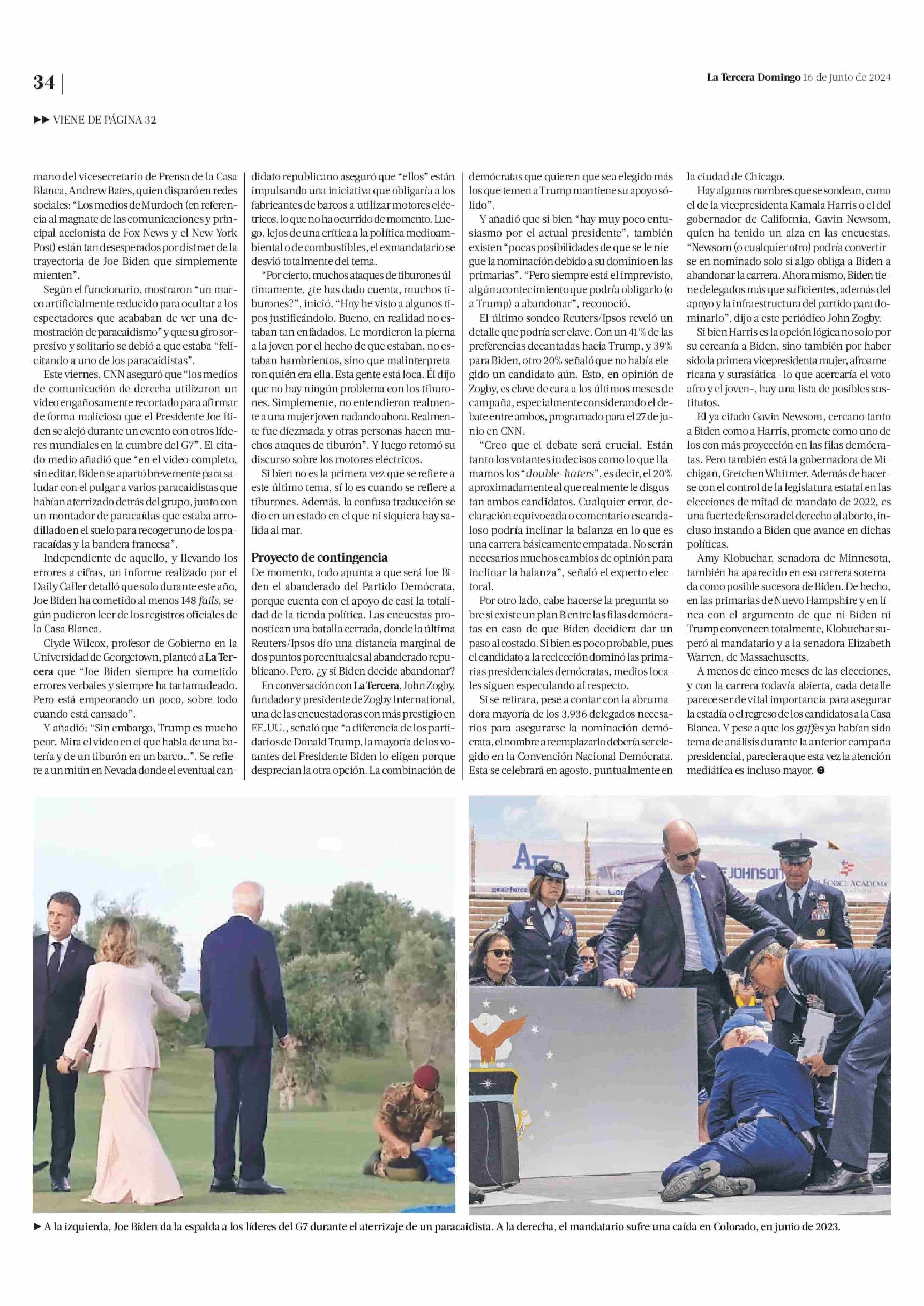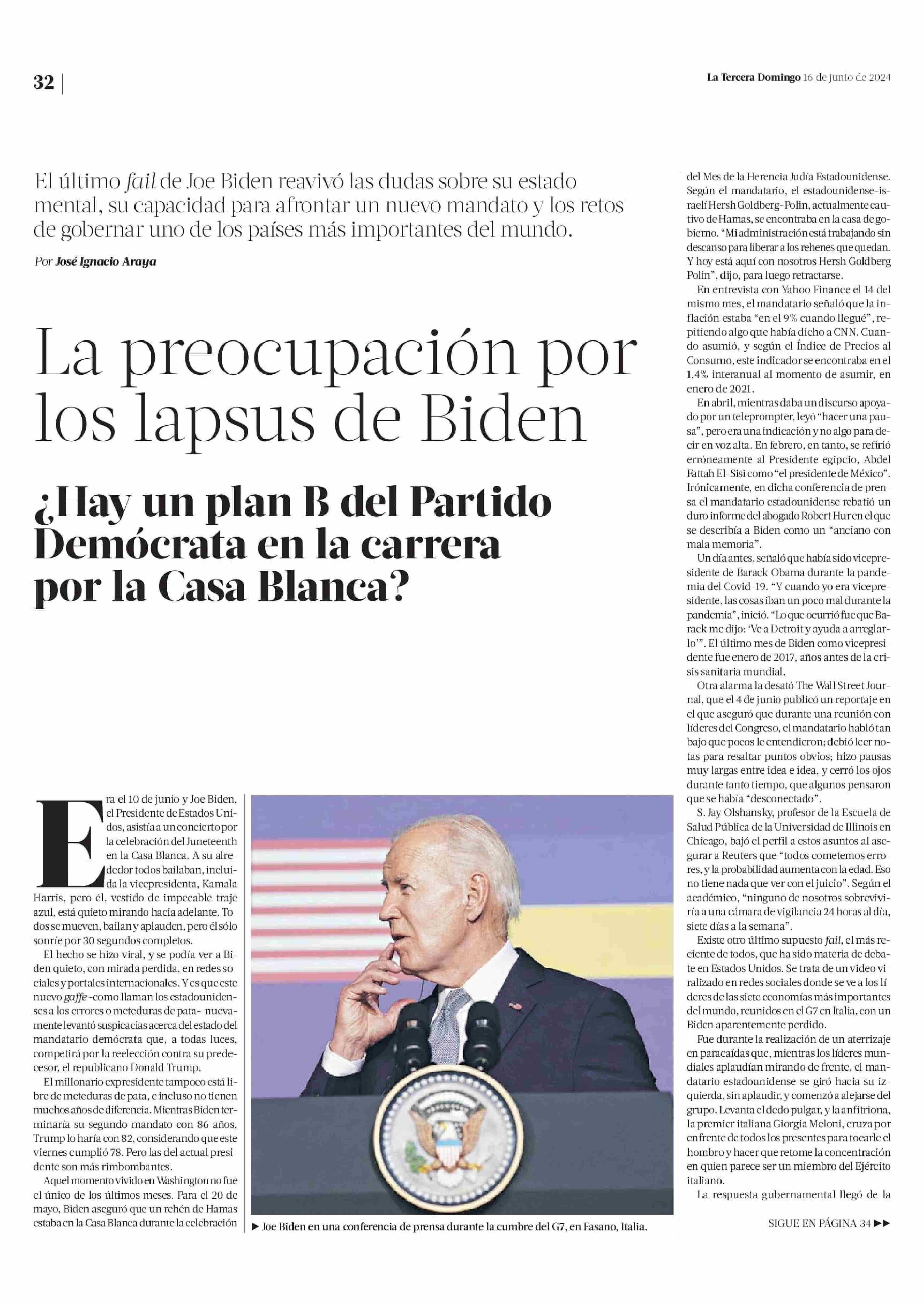 La preocupación por los lapsus de Biden ¿Hay un plan B del Partido Demócrata en la carrera por la Casa Blanca? 16-06-2024 La Tercera |