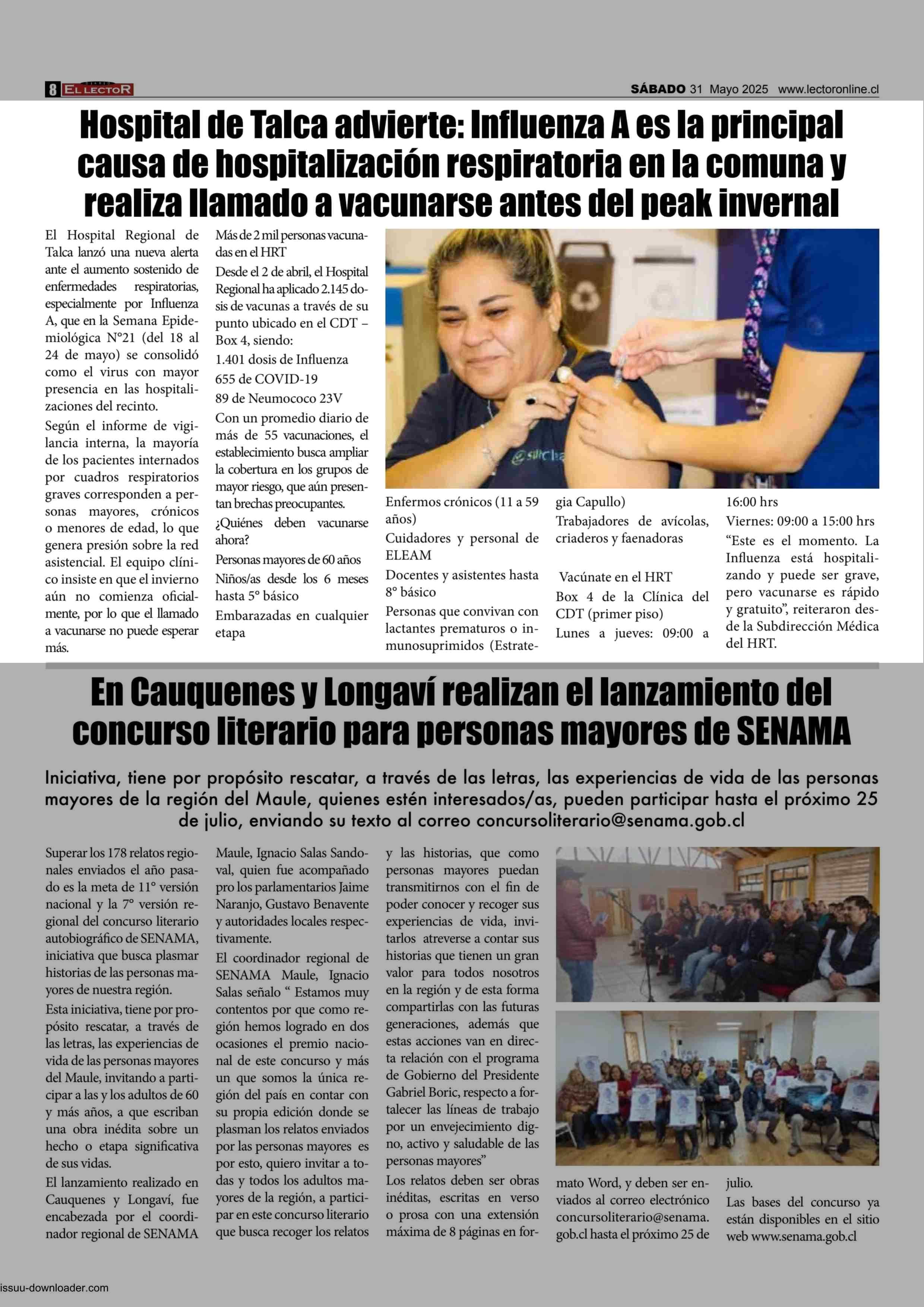 Hospital de Talca advierte: Influenza A es la principal causa de hospitalización respiratoria en la comuna y realiza llamado a vacunarse antes del peak invernal 31-05-2025 El Lector |