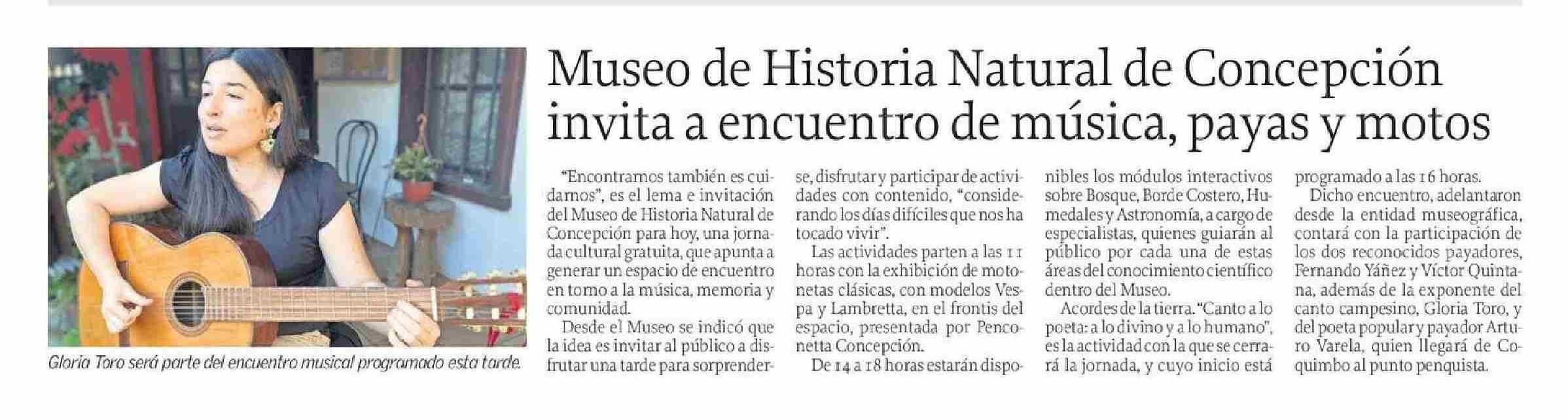| Título: | Museo de Historia Natural de Concepción invita a encuentro de música, payas y motos |