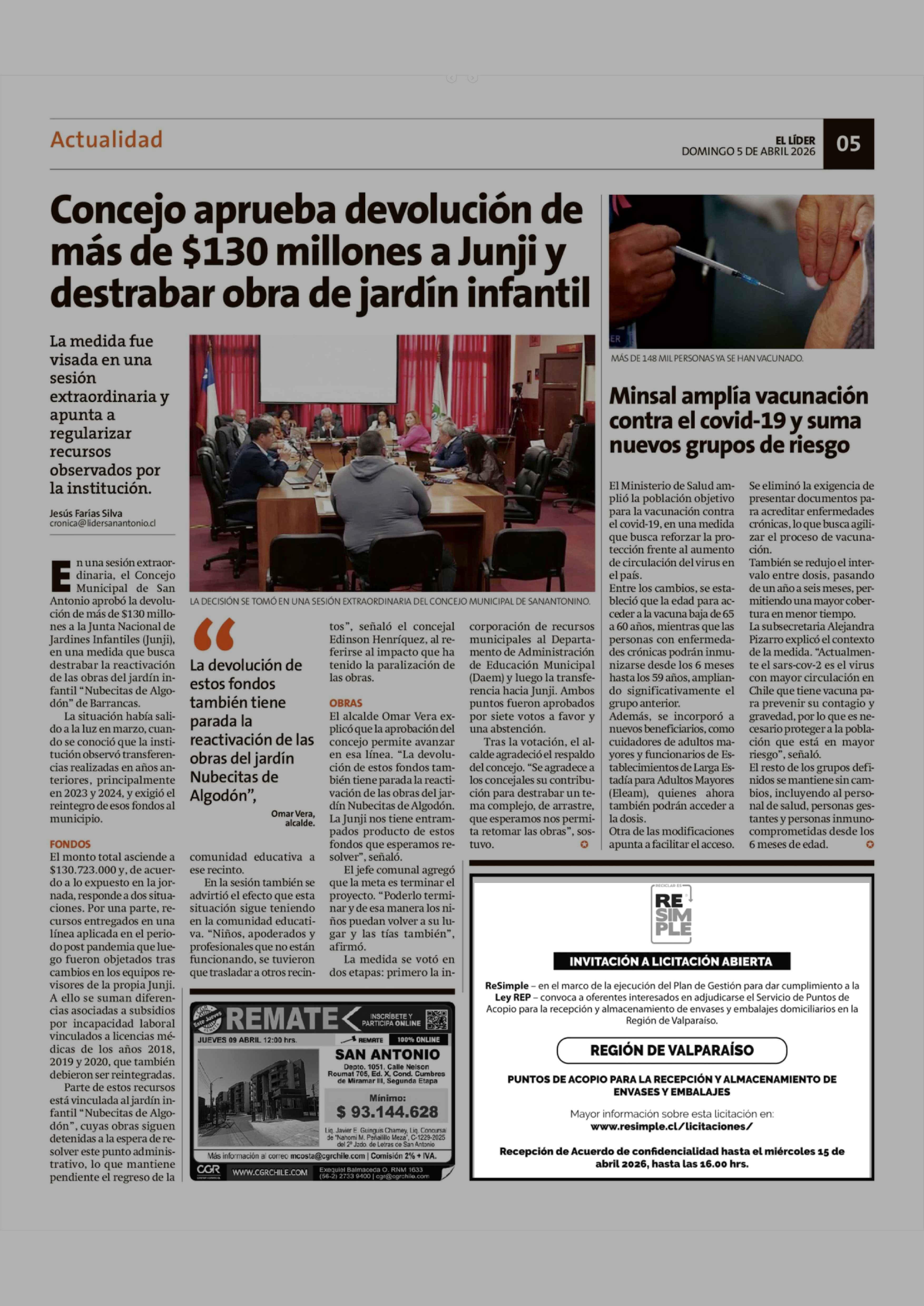 Fecha: 05-04-2026 Sector: Aviso Licitaciones Región: Región de Valparaíso