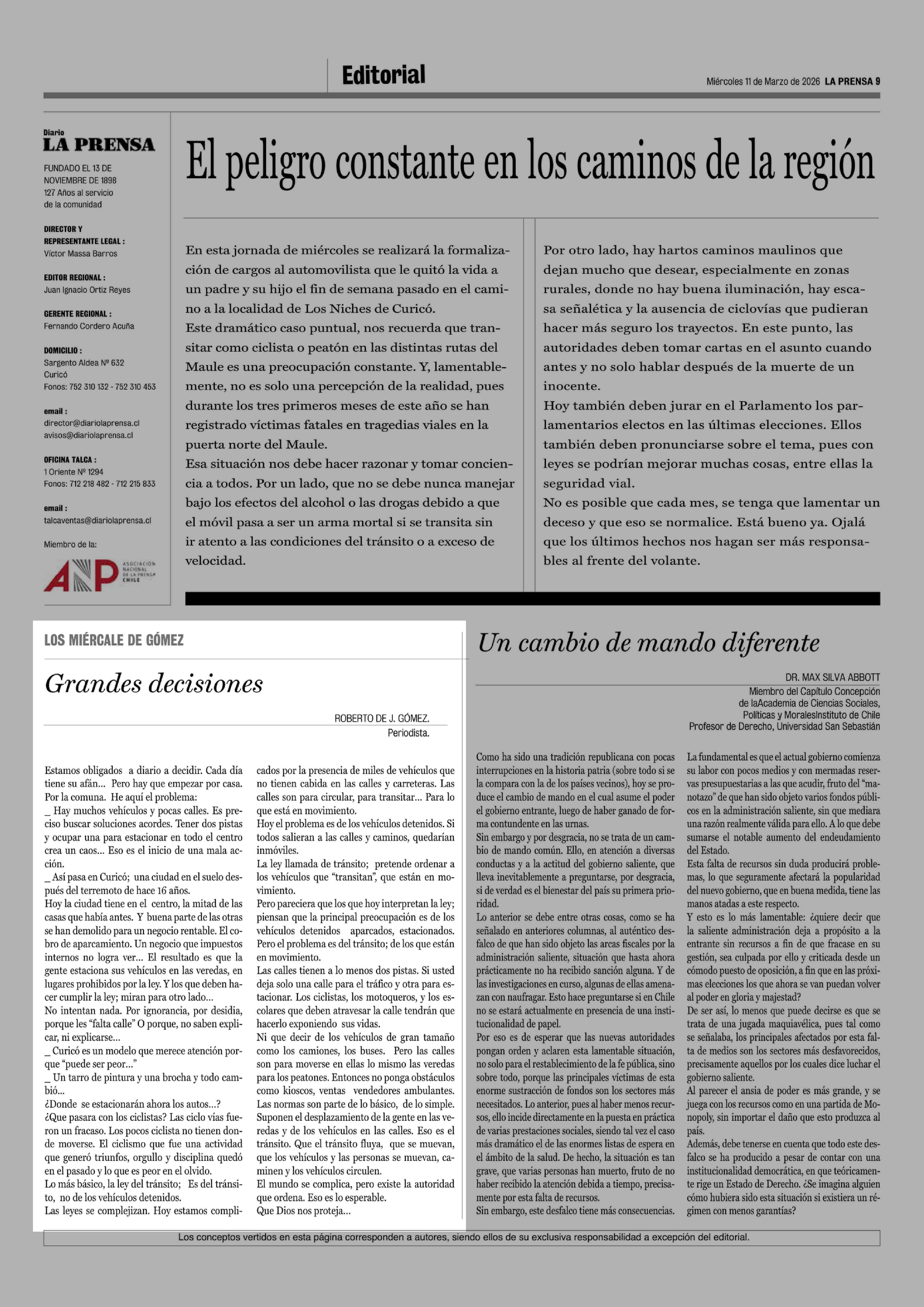 Cartas: Grandes decisiones 11-03-2026 La Prensa de Curicó |