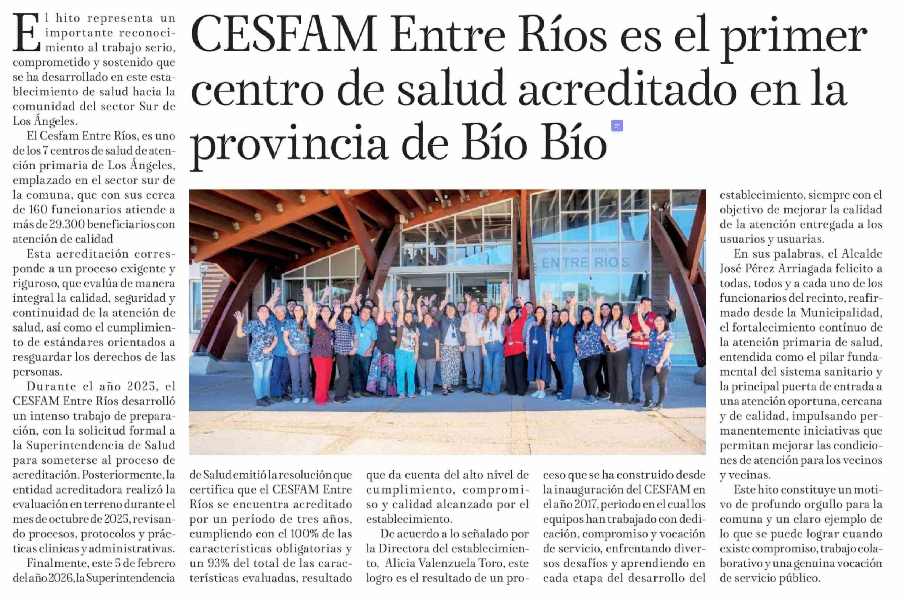 Título: CESFAM Entre Ríos es el primer centro de salud acreditado en la provincia de Bío Bío