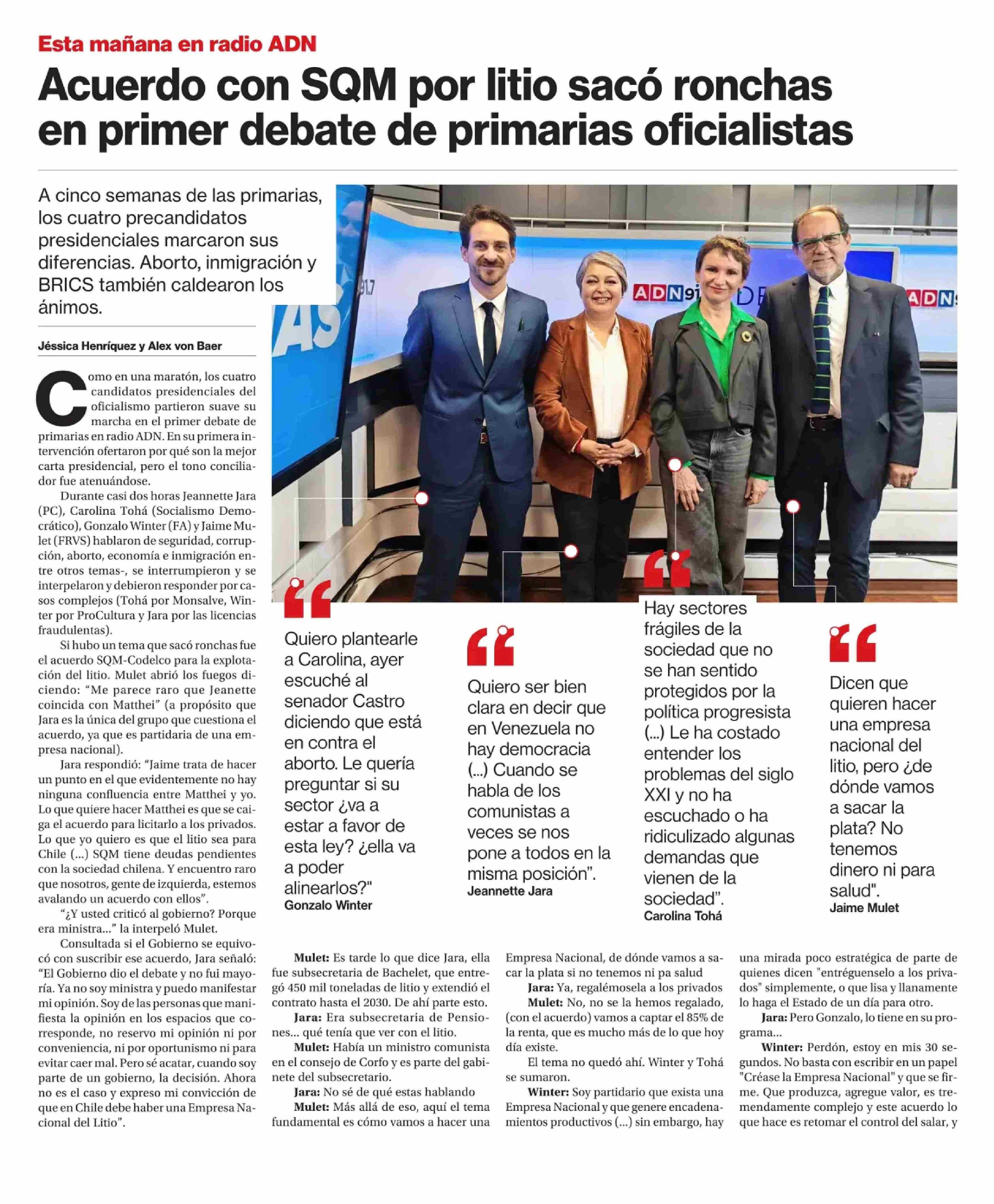 Título: Acuerdo con SQM por litio sacó ronchas en primer debate de primarias oficialistas