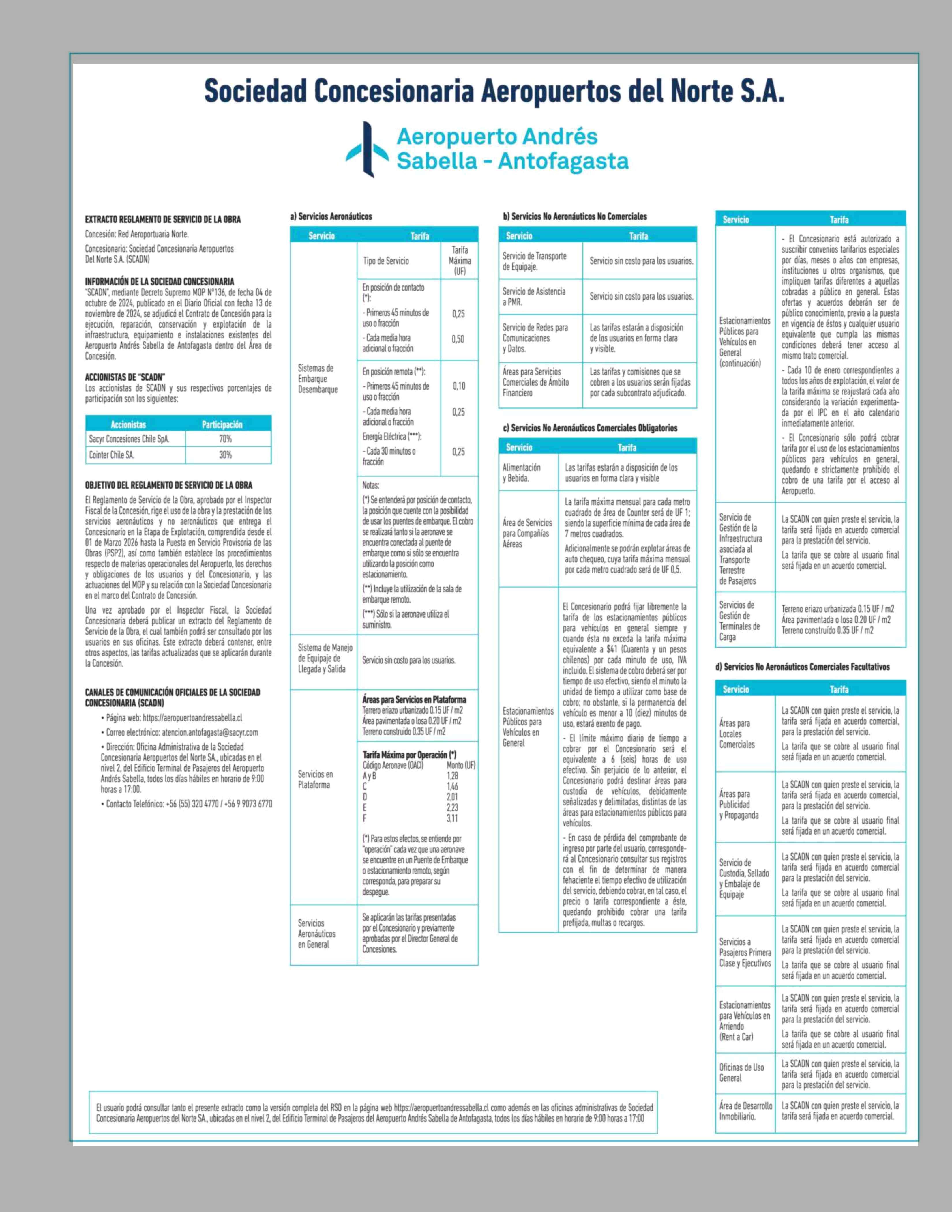 Extractos: Sociedad Concesionaria Aeropuertos del Norte S.A.