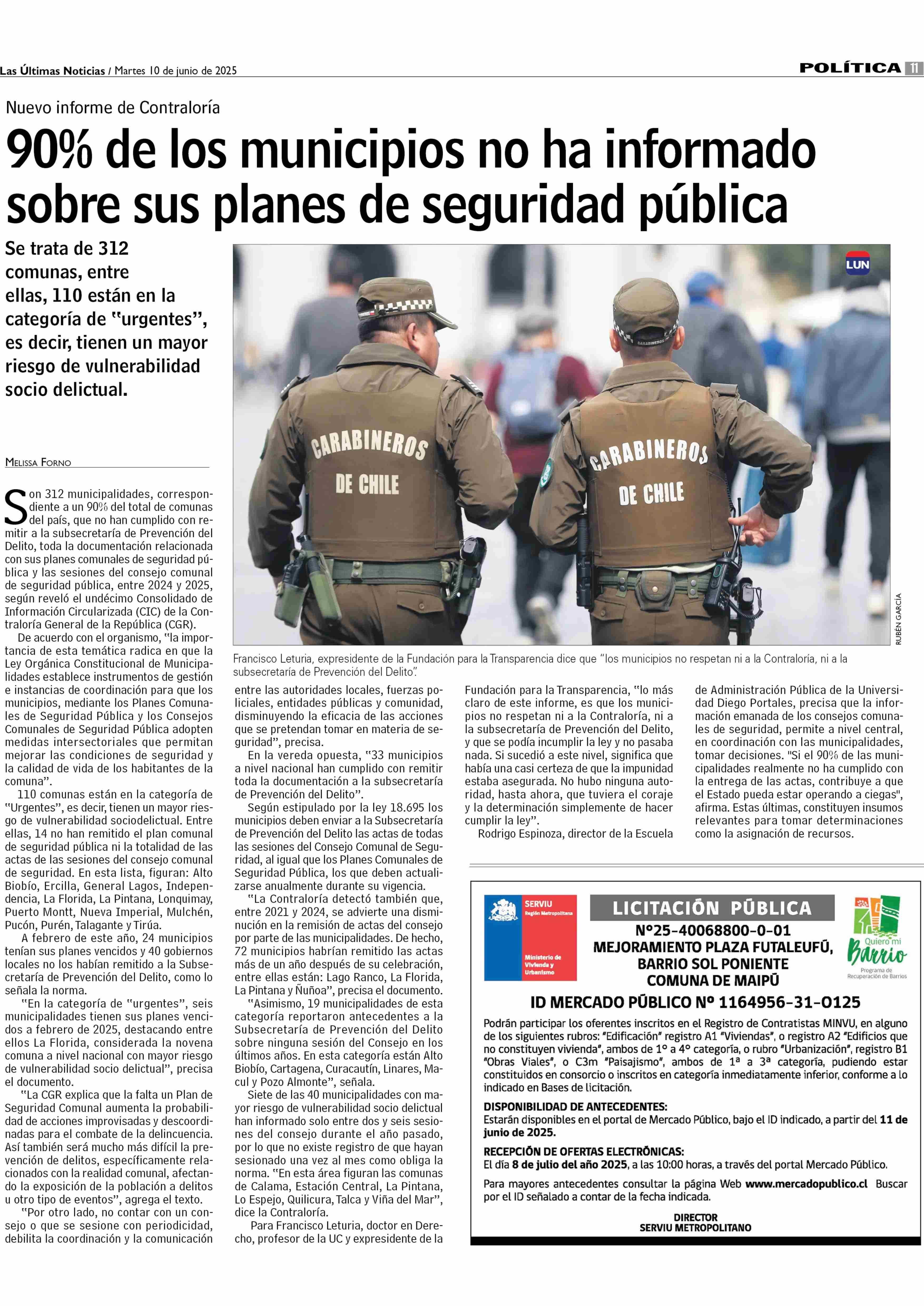 90% de los municipios no ha informado sobre sus planes de seguridad pública 10-06-2025 Las Últimas Noticias |