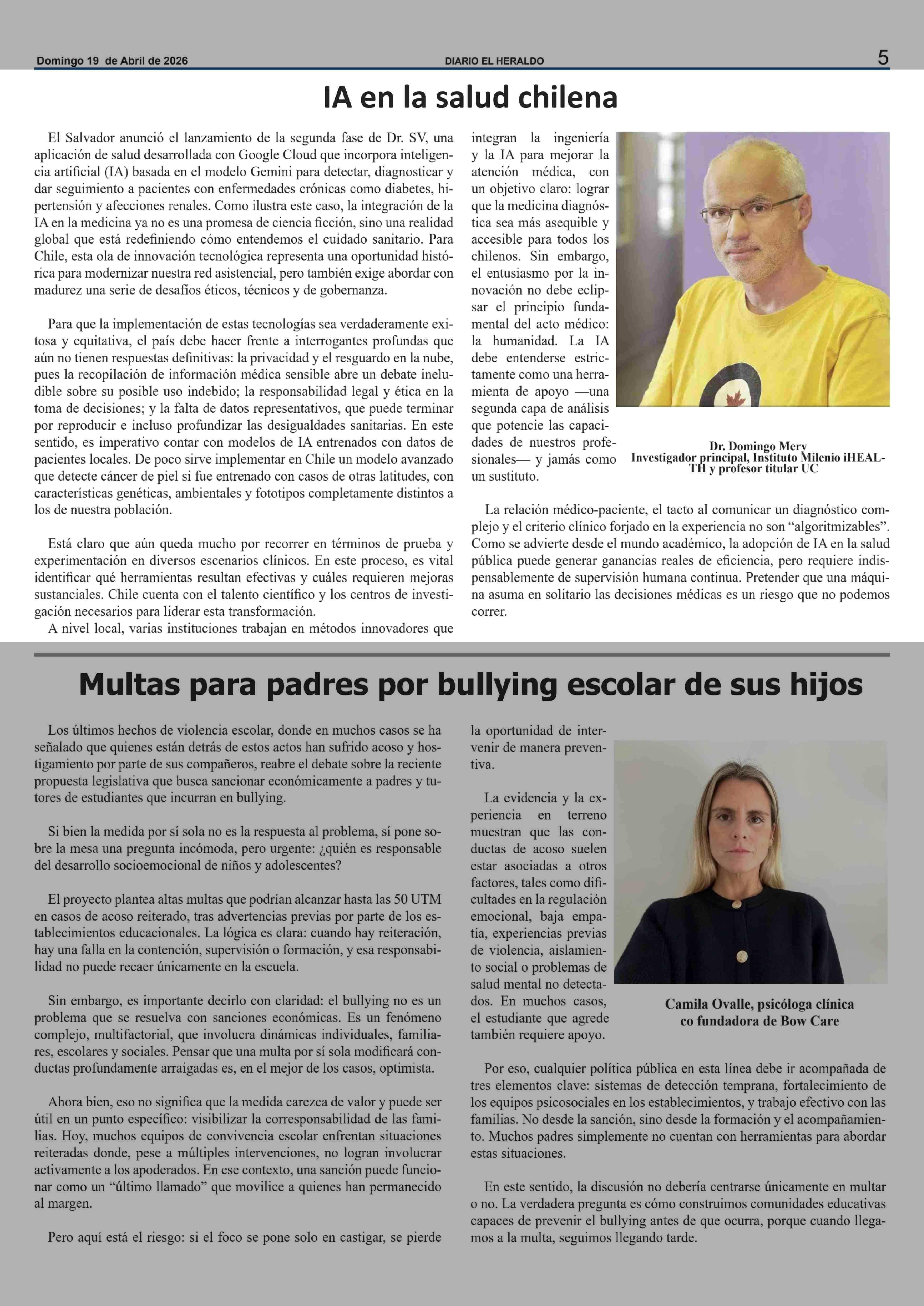 Título: COLUMNAS DE OPINIÓN: IA en la salud chilena