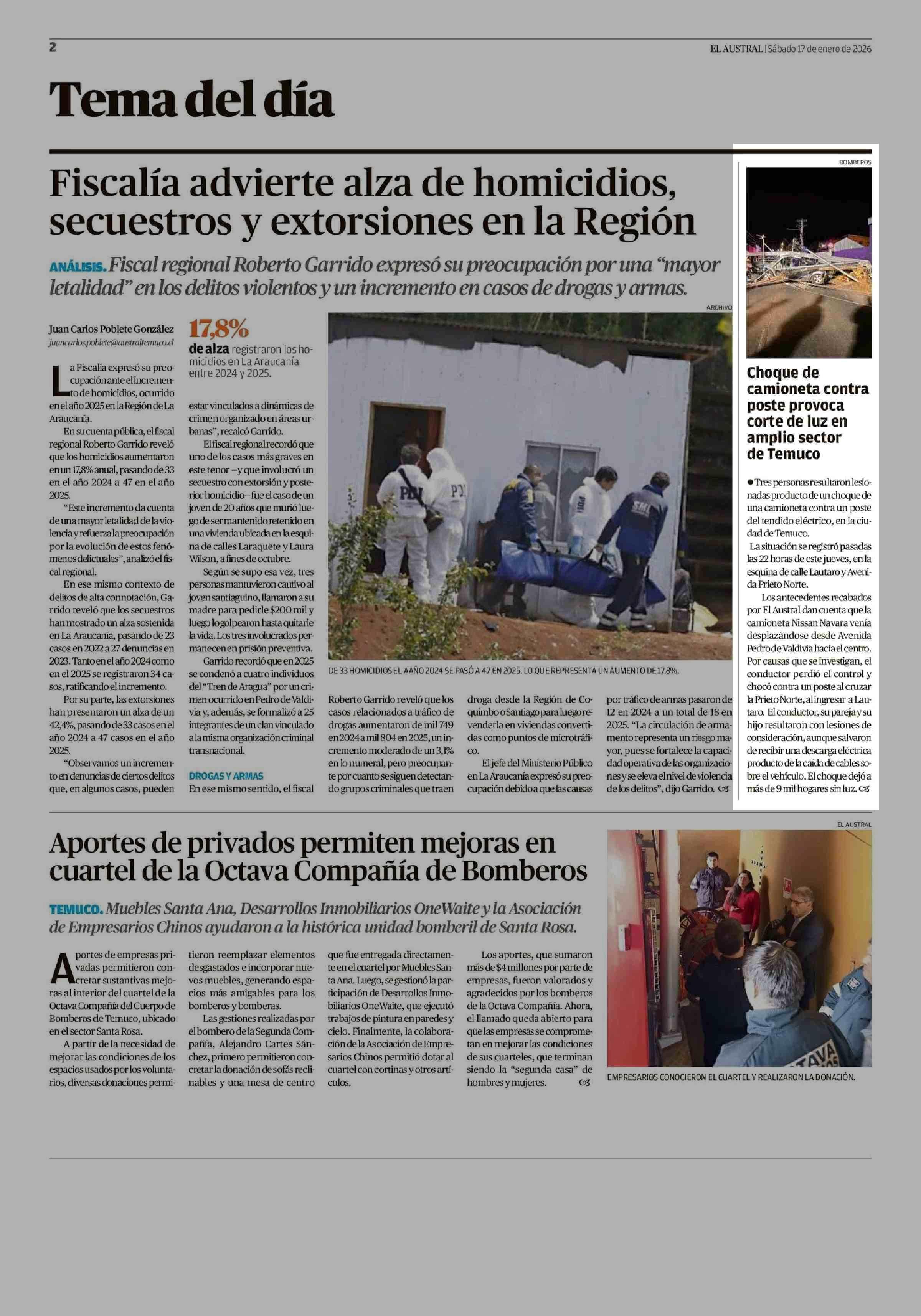 Fuente: El Austral de la Araucanía (El Austral de la Araucanía) Página(s): 2