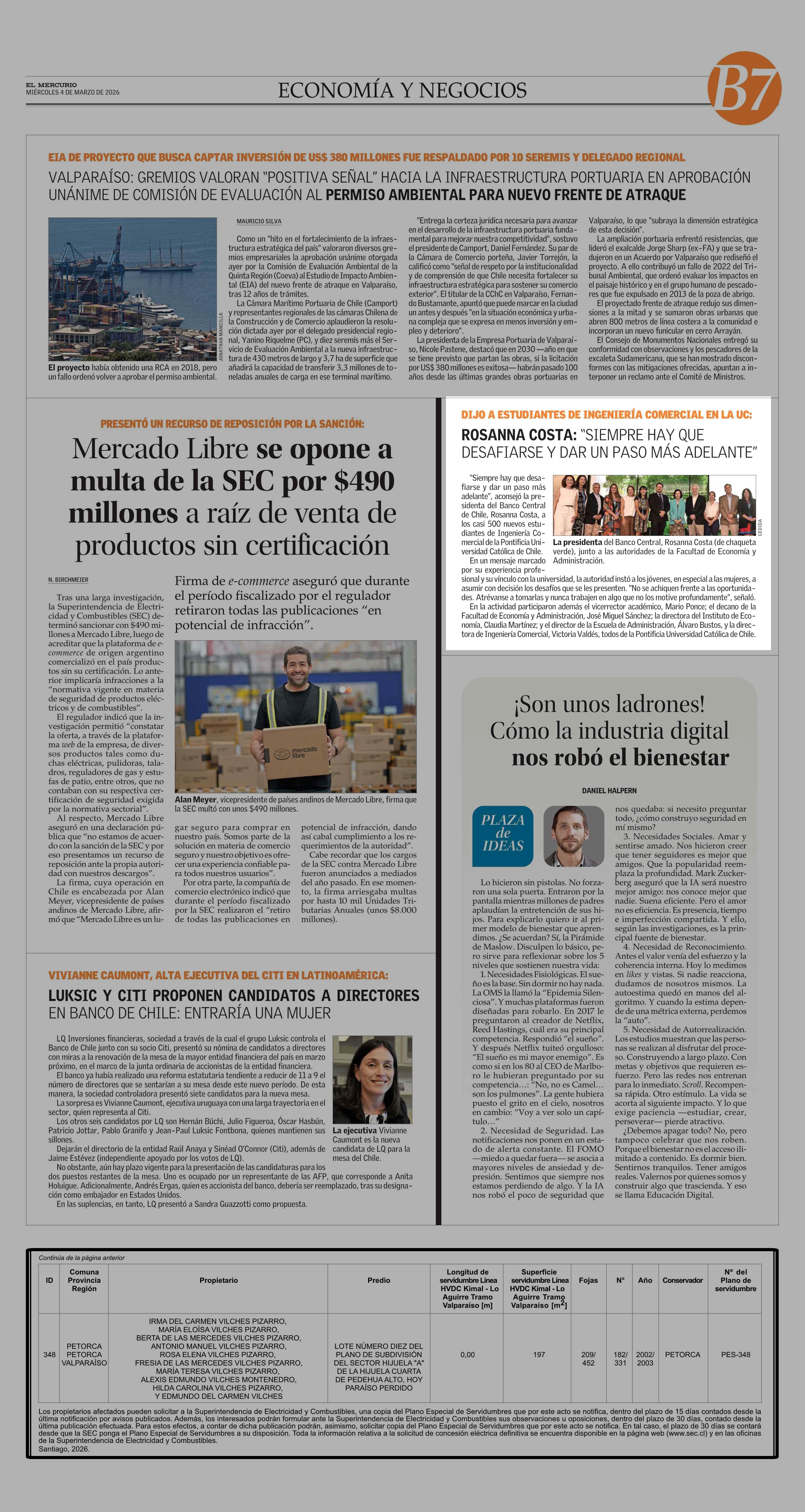 ROSANNA COSTA: "SIEMPRE HAY QUE DESAFIARSE Y DAR UN PASO MÁS ADELANTE" 04-03-2026 El Mercurio |