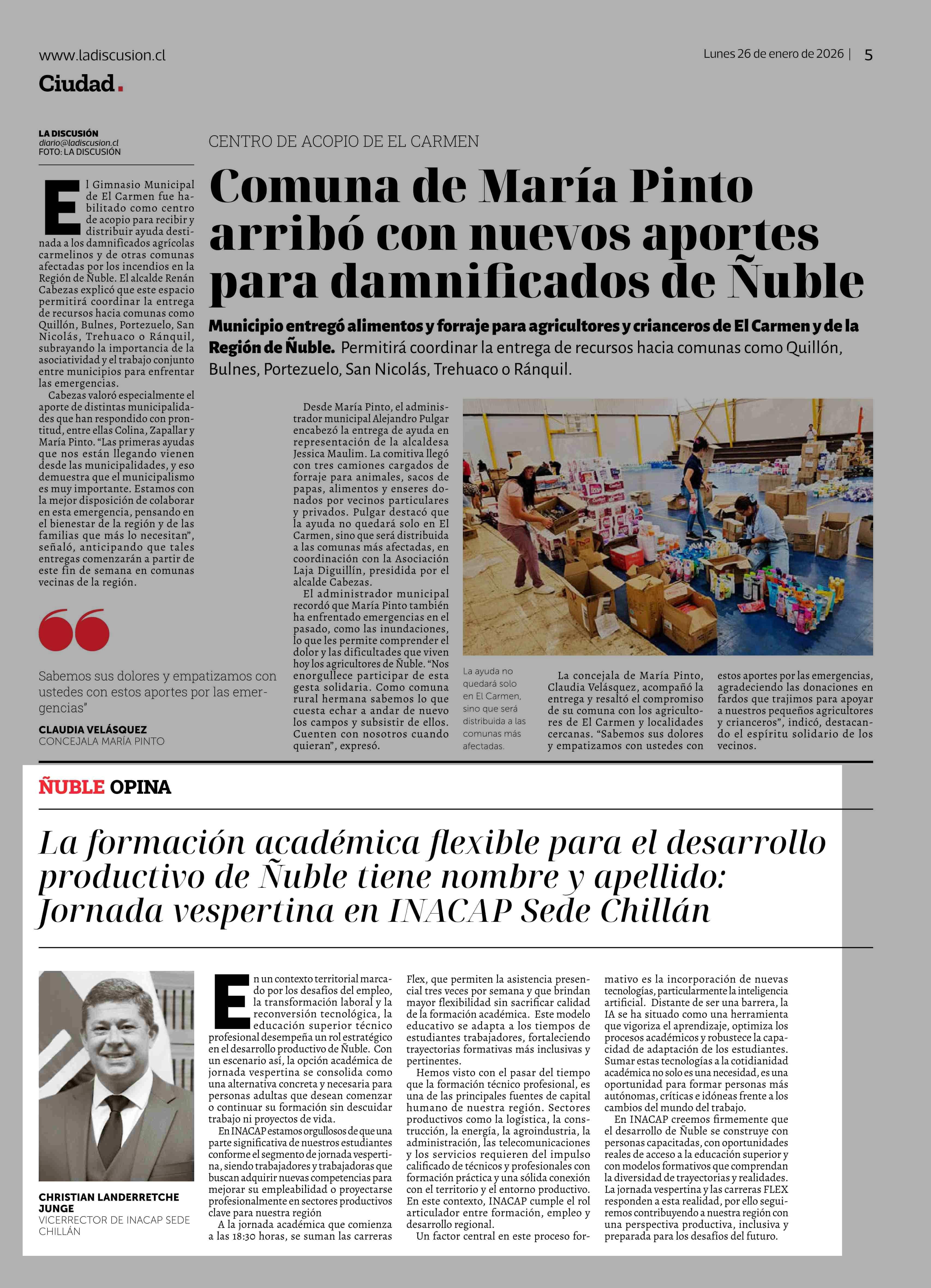 | Fecha: | 26-01-2026 | Sector: | Noticia general | Región: | Región del Ñuble |