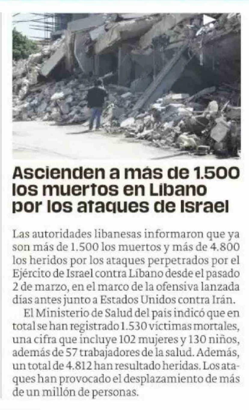 | Título: | Ascienden a más de 1.500 los muertos en Libano por los ataques de Israel |