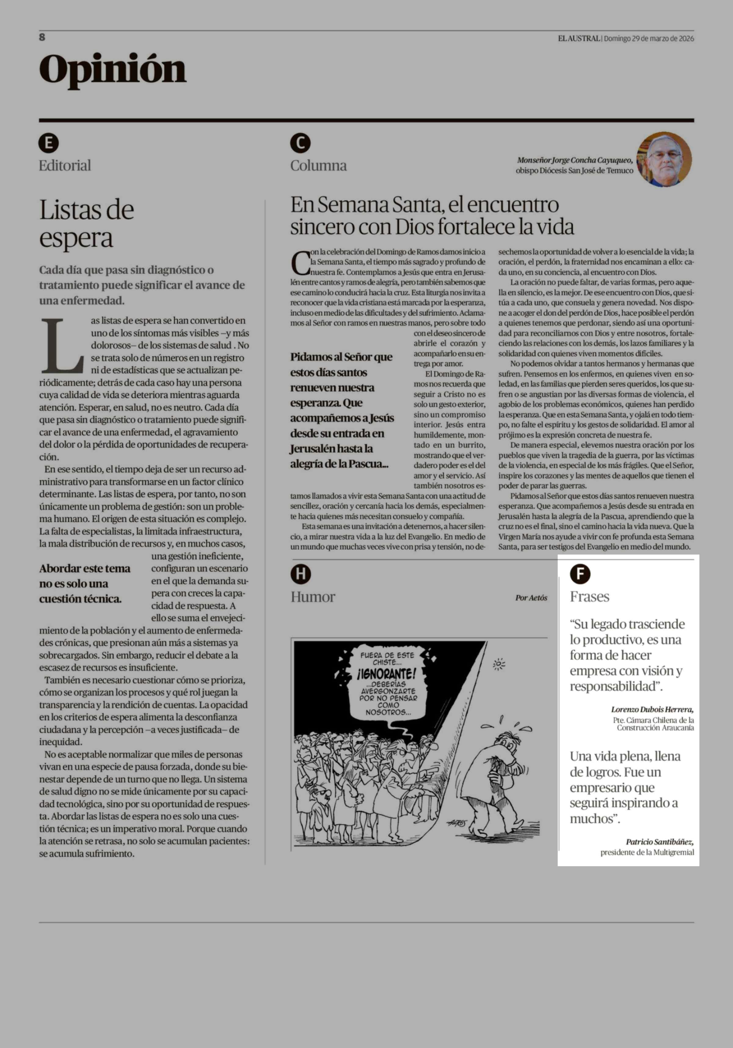 Fuente: El Austral de la Araucanía (El Austral de la Araucanía) Página(s): 8