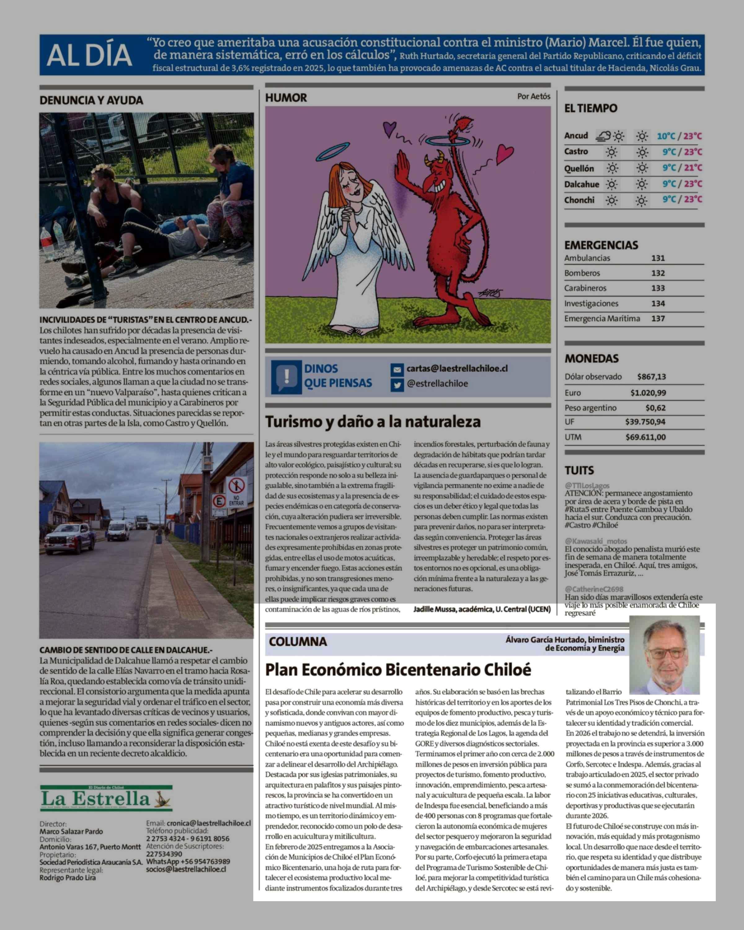Columnas de Opinión: Plan Económico Bicentenario Chiloé 21-02-2026 La Estrella de Chiloé |