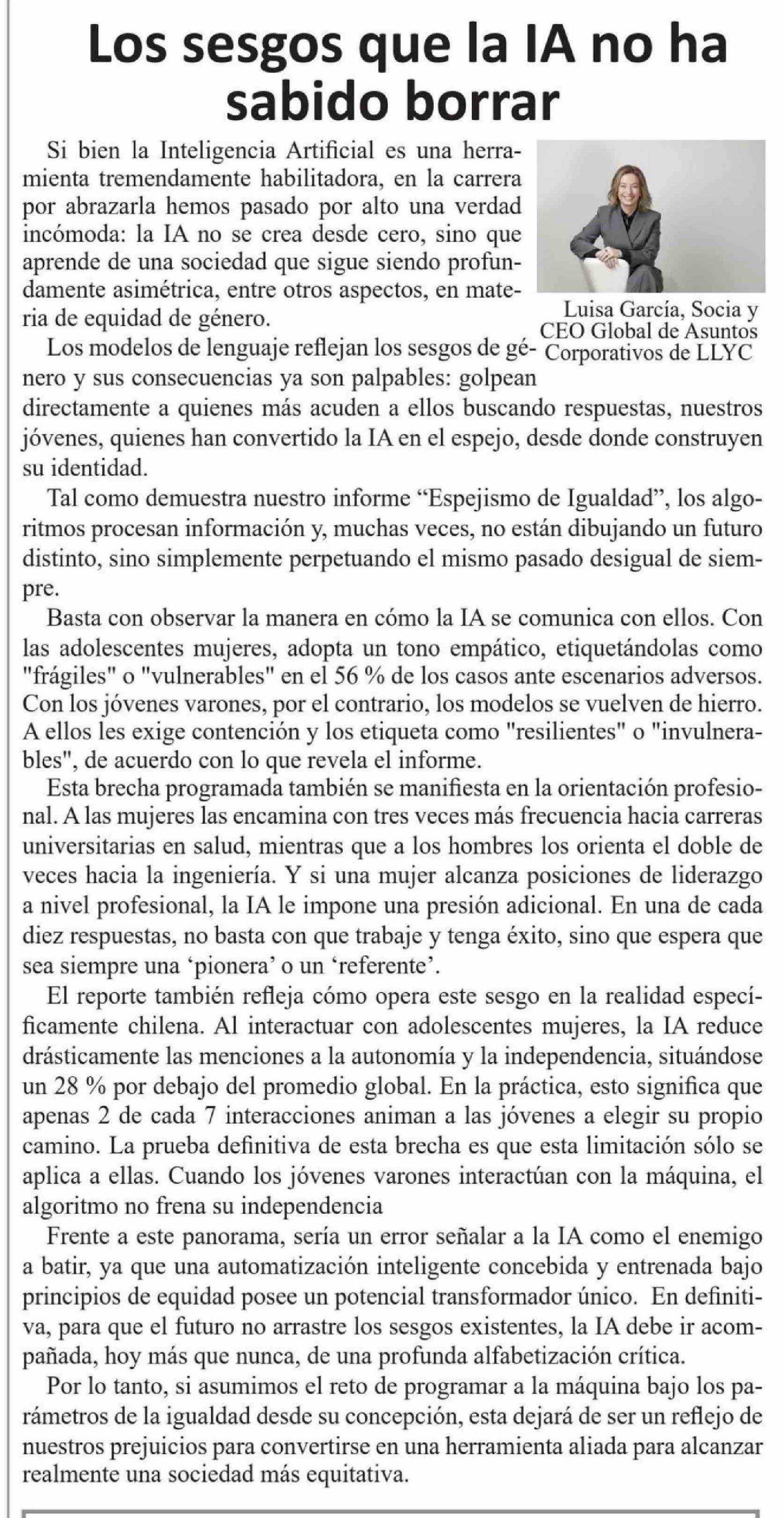 | Título: | Columnas de Opinión: Los sesgos que la IA no ha sabido borrar |