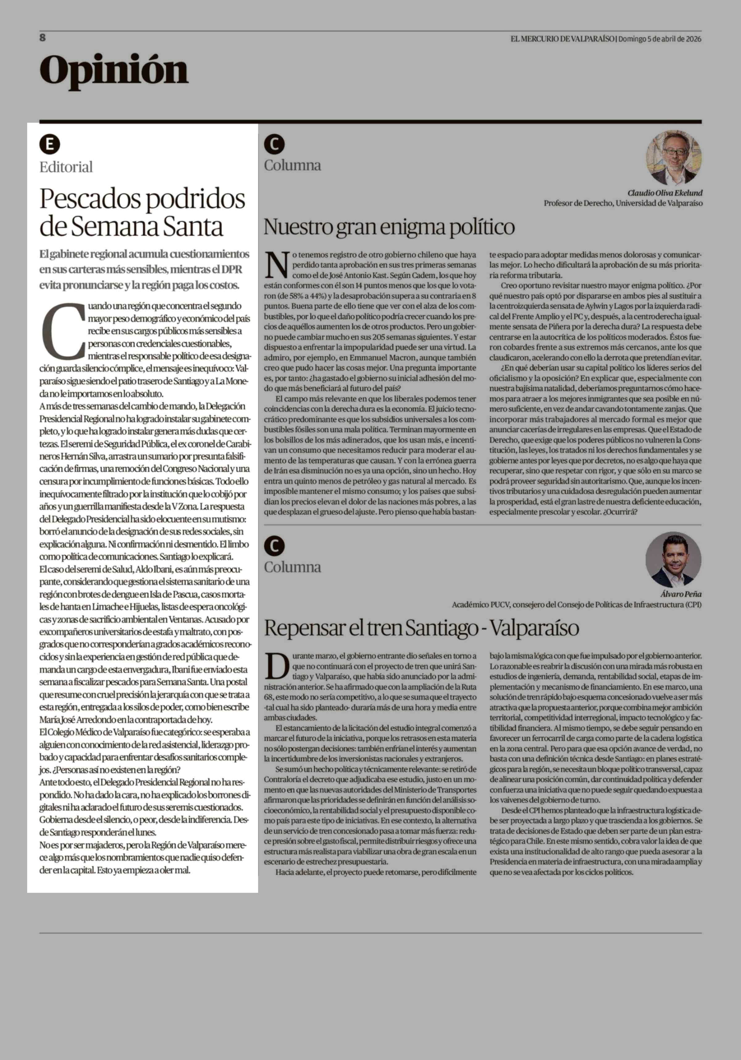 Editorial: Pescados podridos de Semana Santa 05-04-2026 El Mercurio de Valparaíso |