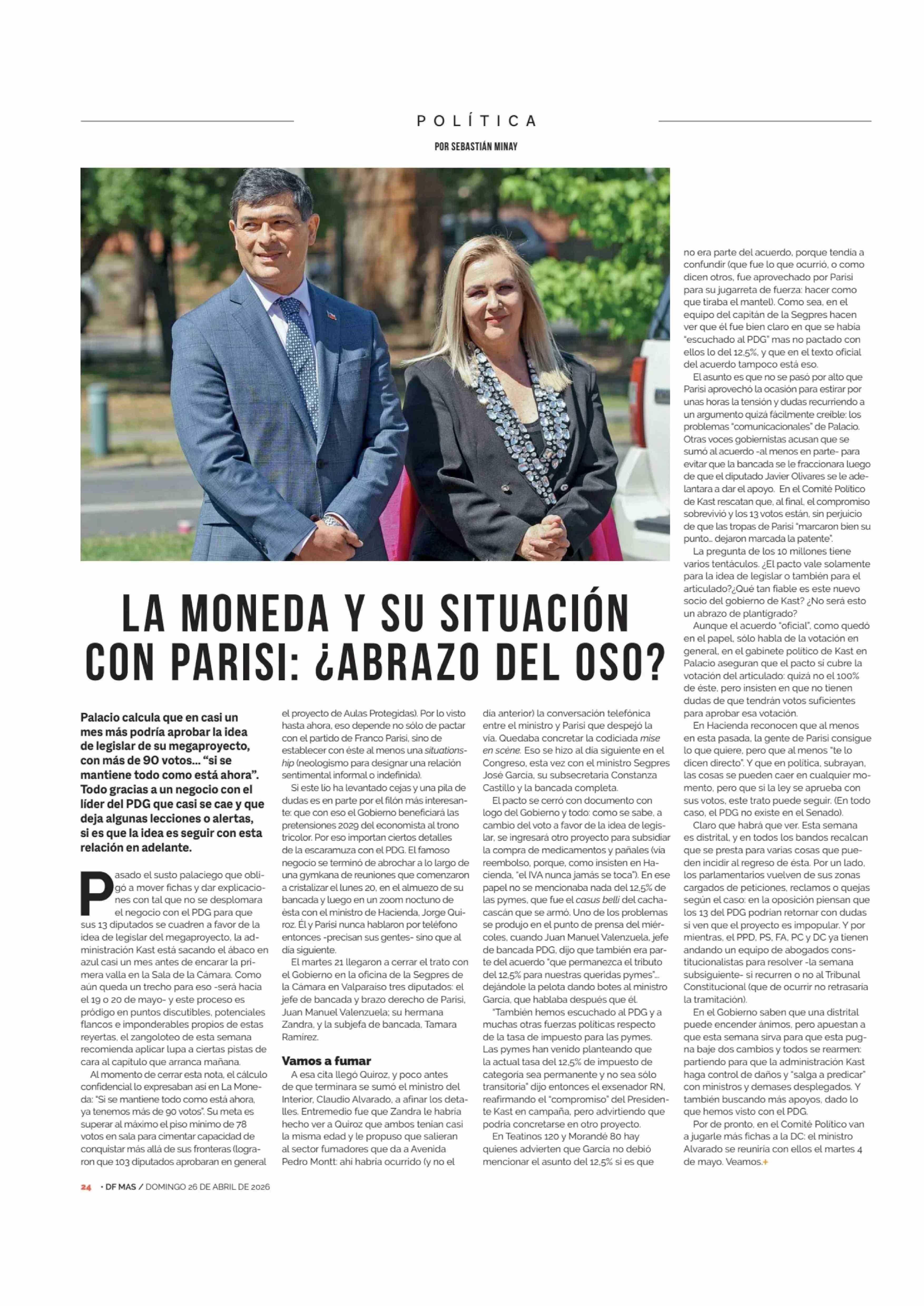 Título: LA MONEDA Y SU SITUACIÓN CON PARISI: ¿ ABRAZO DEL OSO?