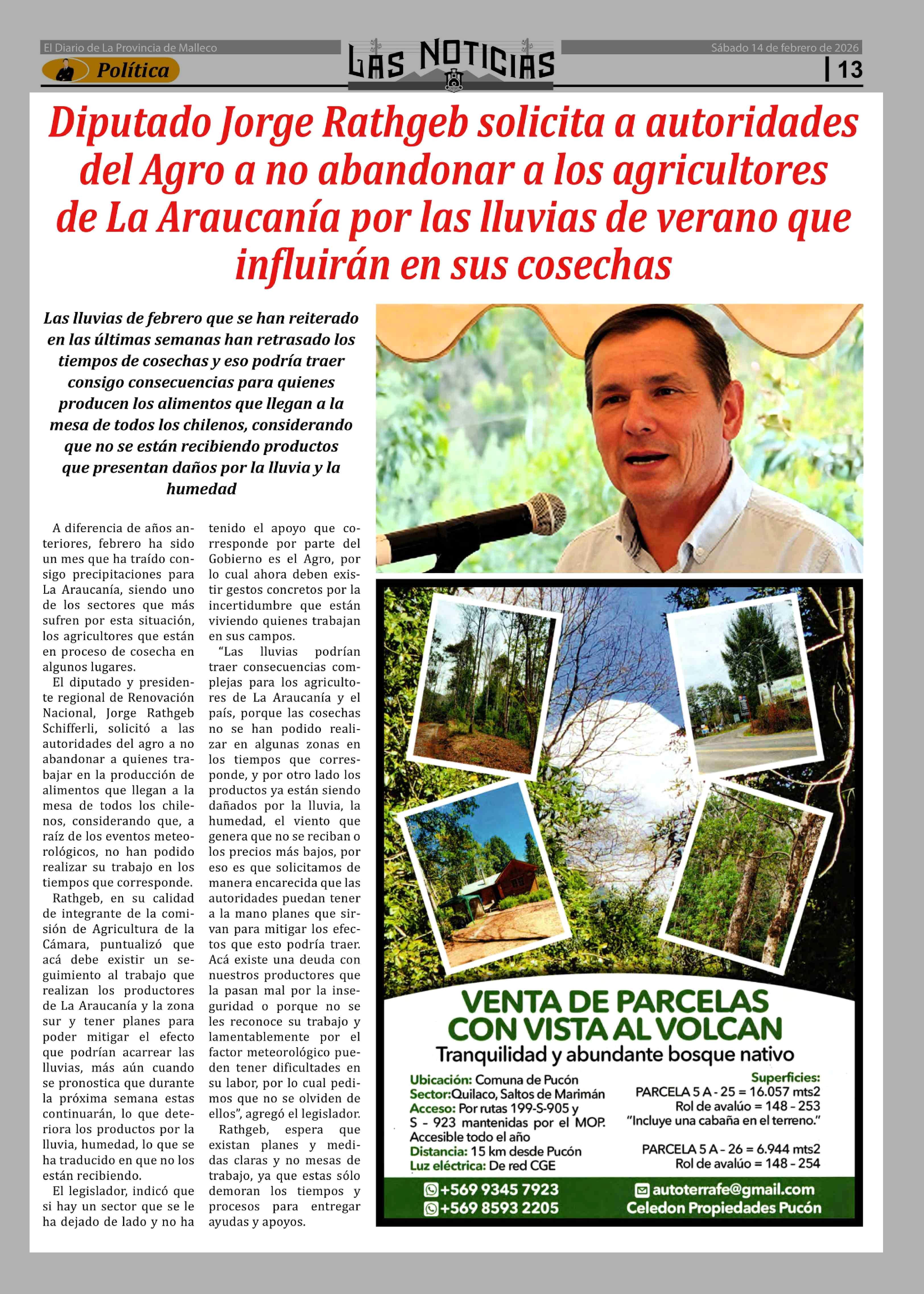 Fecha: 14-02-2026 Sector: Noticia general Región: Región de la Araucanía