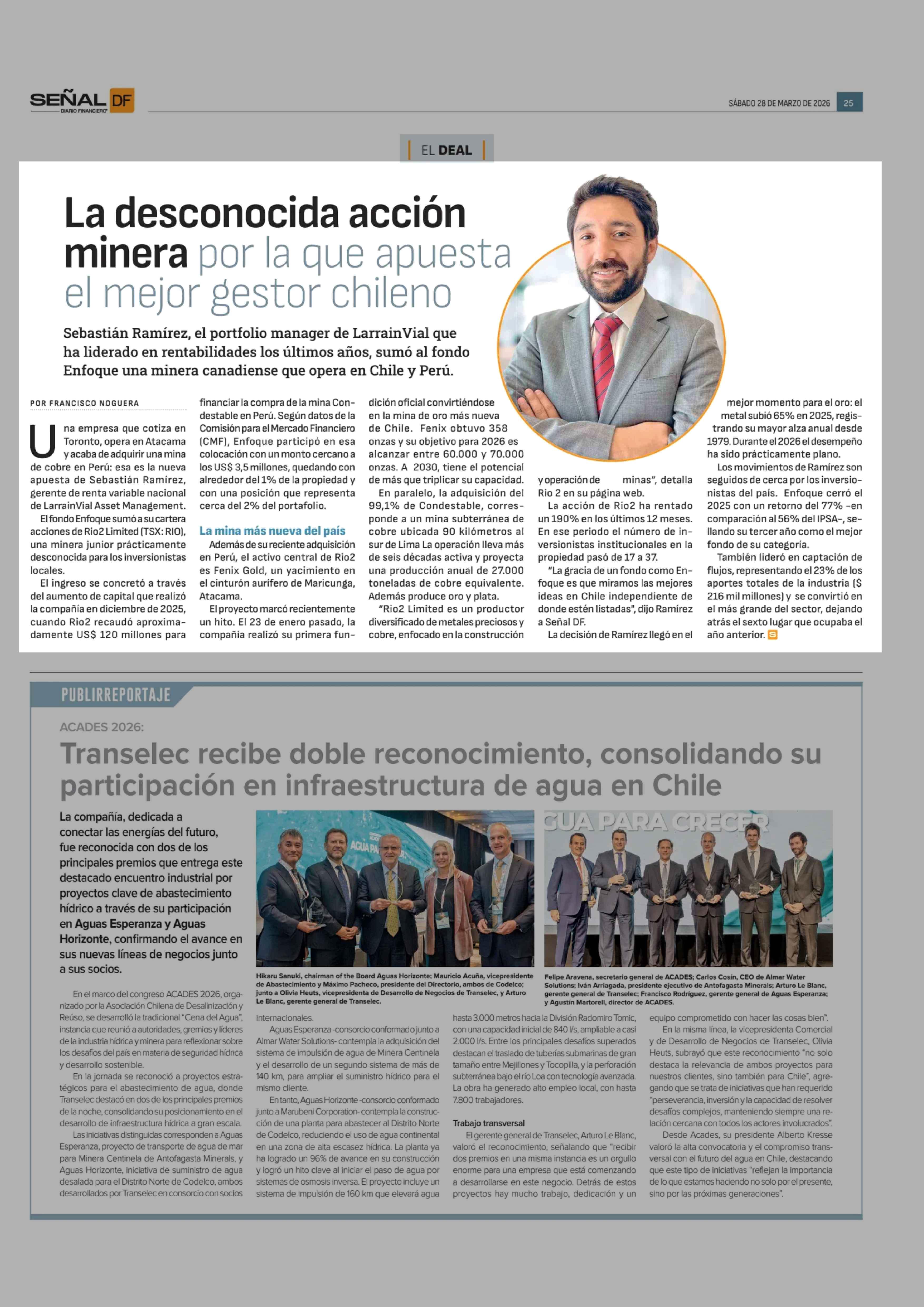 La desconocida acción minera por la que apuesta el mejor gestor chileno 28-03-2026 Diario Financiero |