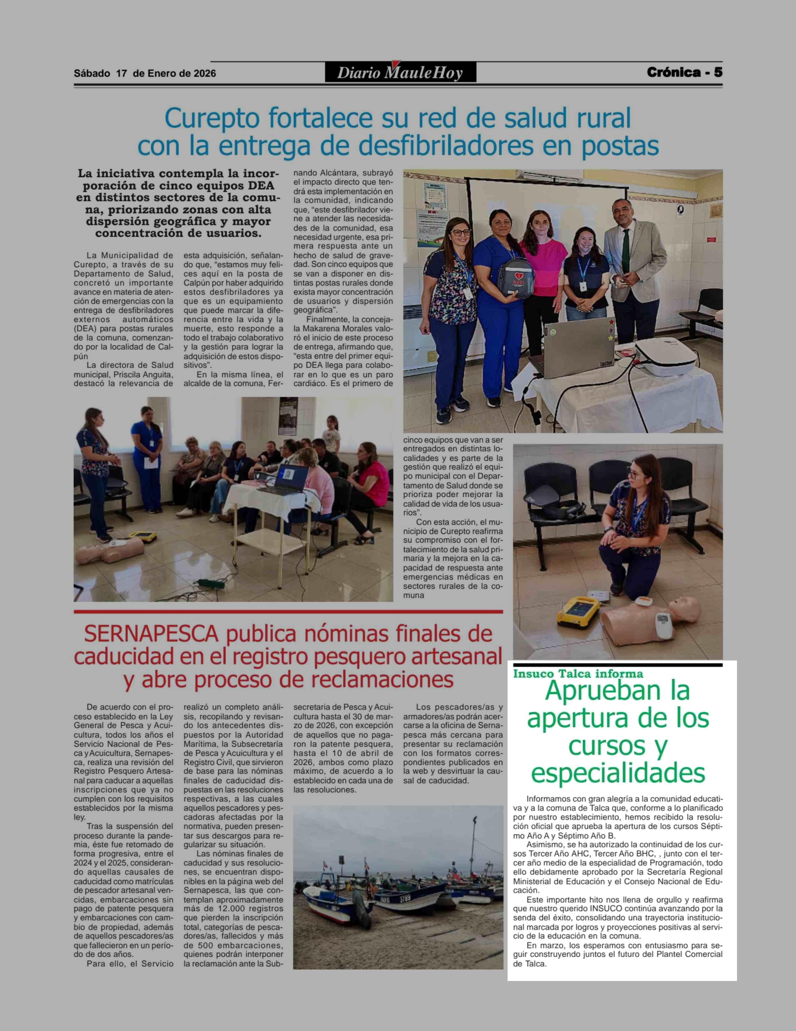 Fecha: 17-01-2026 Sector: Noticia general Región: Región del Maule